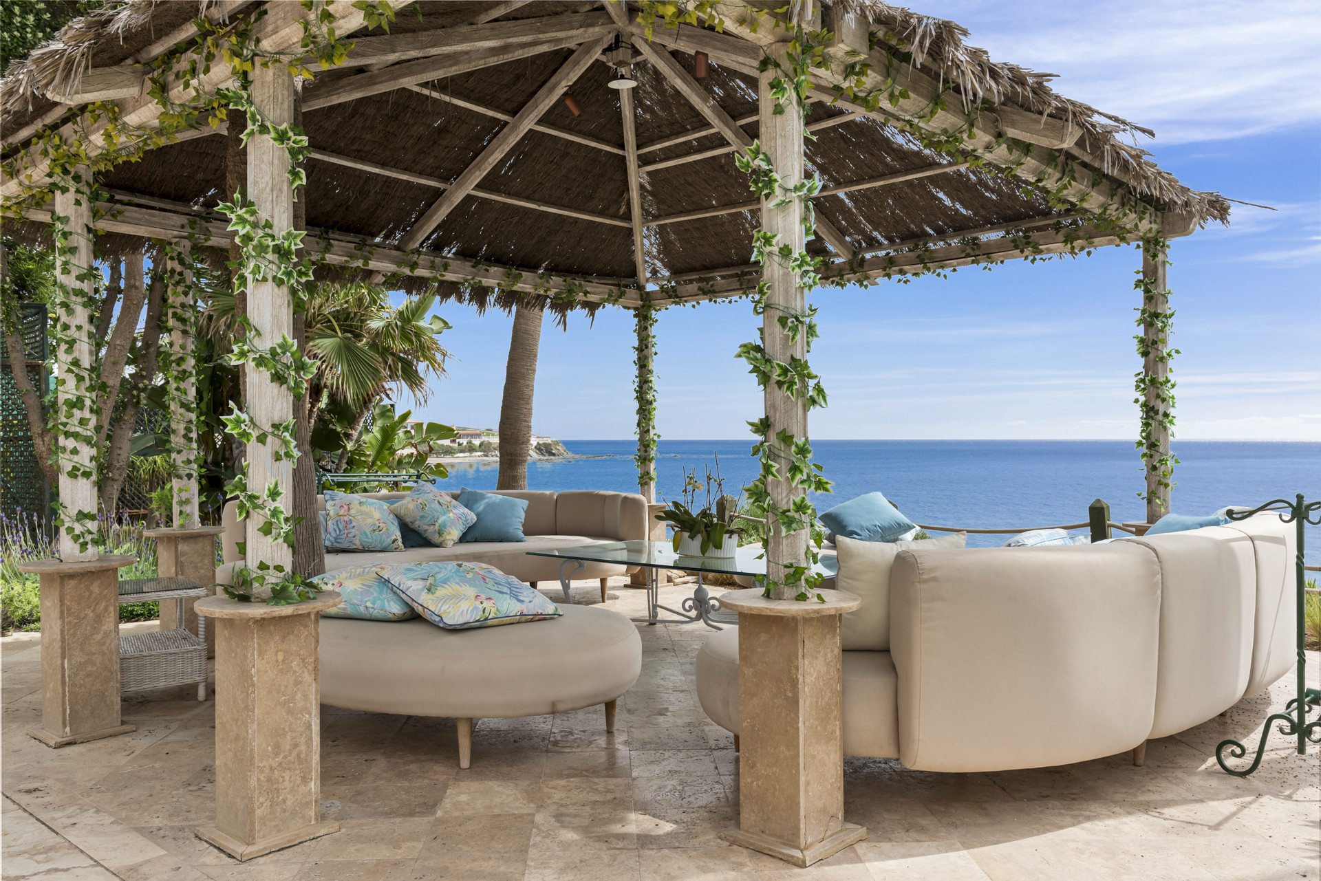 Each of the bedrooms boasts panoramic views of the sea and sun, accompanied by private terraces and sumptuous sun beds. Indoors, guests indulge in the opulence of heated swimming pools, a rejuvenating spa, two saunas, Turkish baths, a serene massage room, a state-of-the-art gymnasium, and a captivating home cinema.