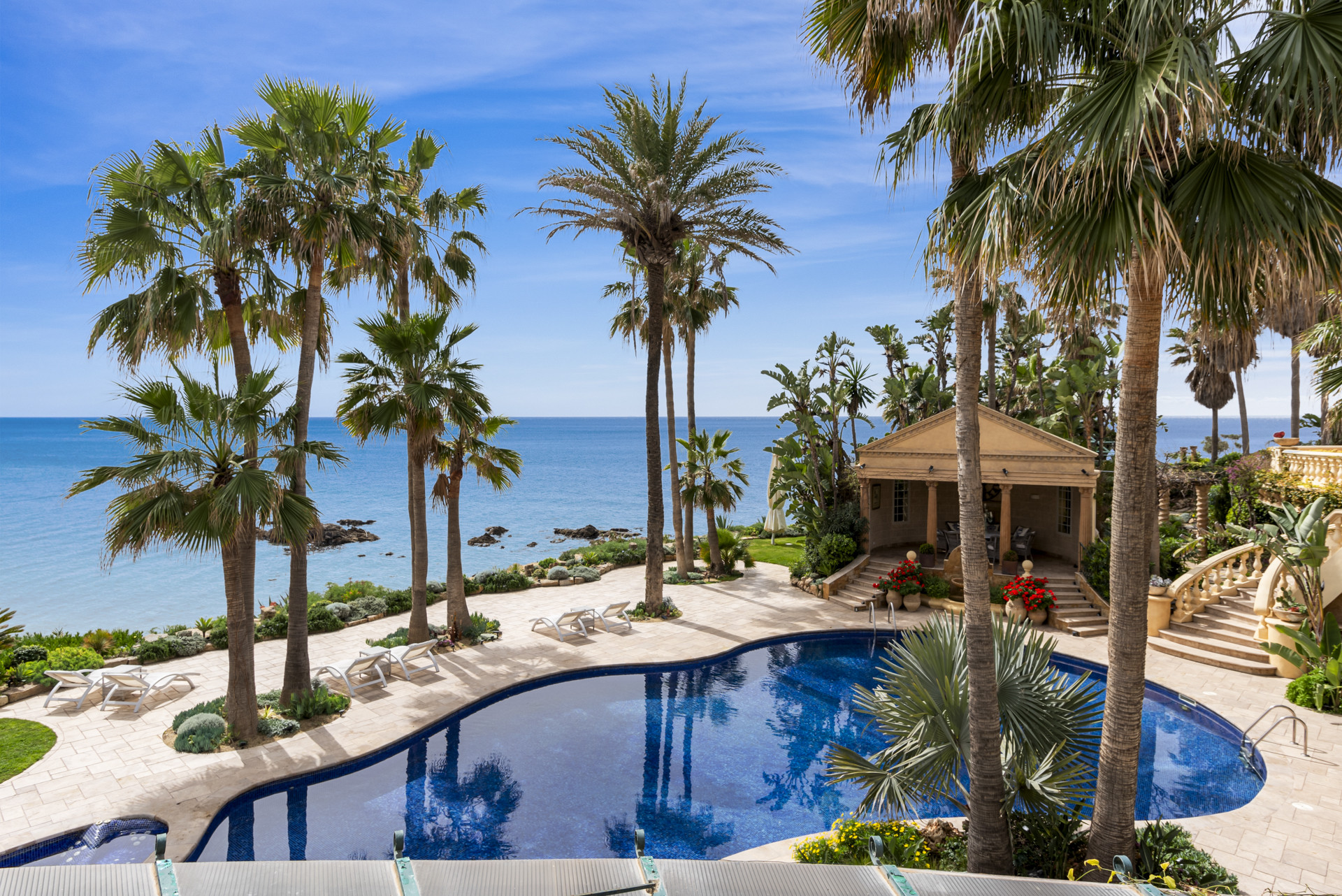 Nestled along the sun-kissed shores of the Costa del Sol, this exclusive villa offers an unparalleled experience tailored to the discerning international elite. With a prime location boasting the longest beachfront in the Malaga/Marbella region, guests are treated to uninterrupted vistas of the azure Mediterranean.