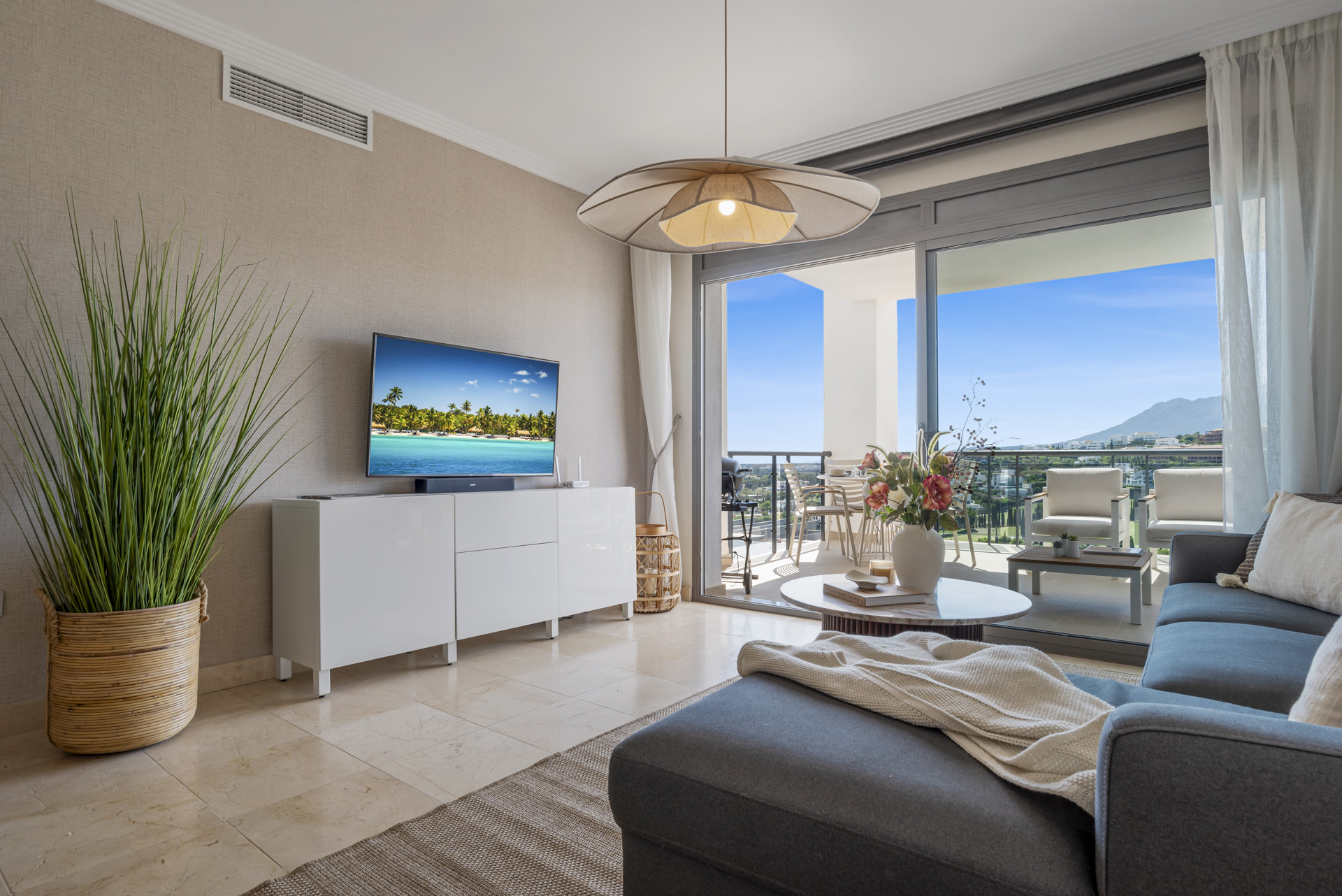 Este apartamento de 2 dormitorios tiene una de las mejores vistas panorámicas del mar de la Costa del Sol.
