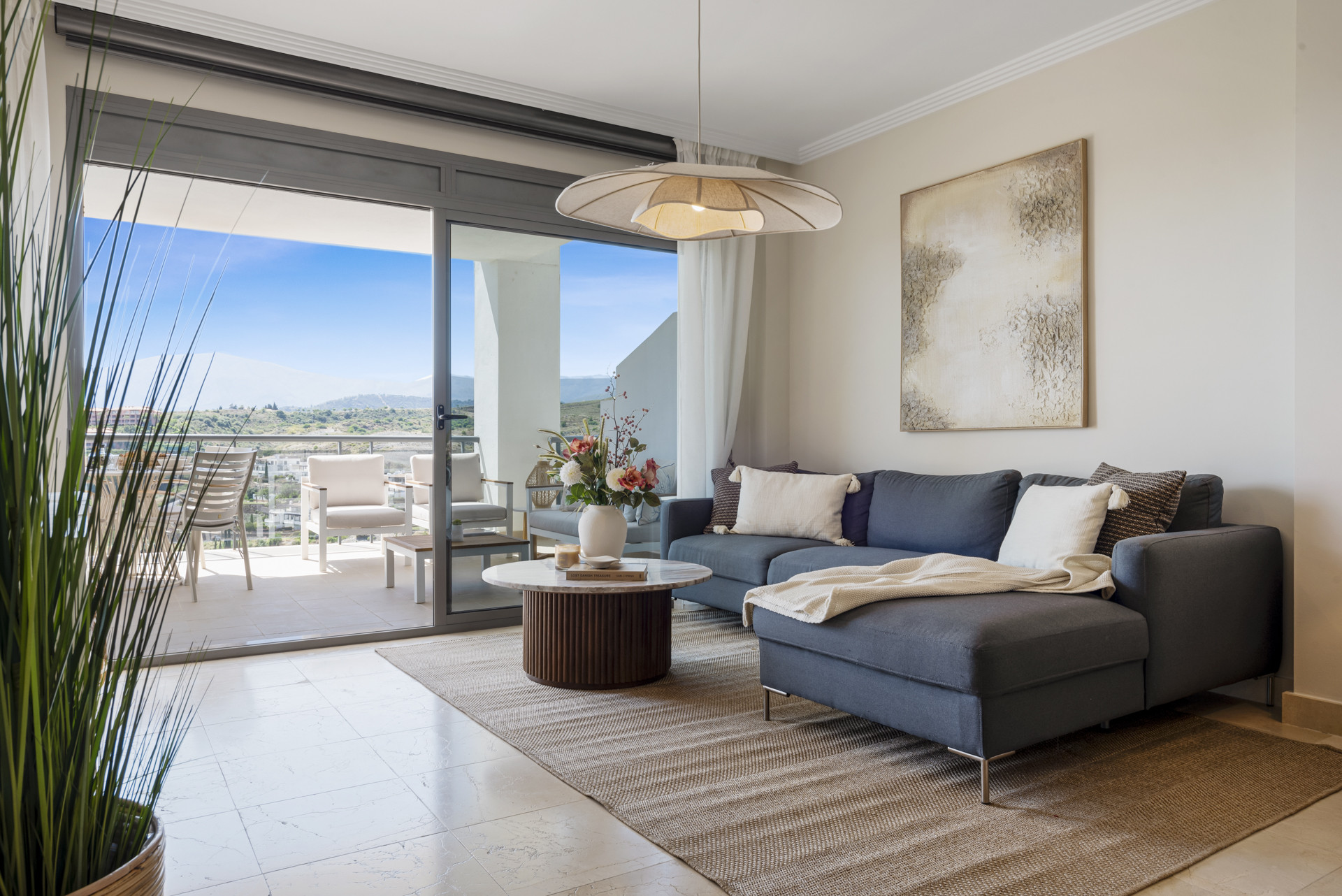 El espacioso apartamento está situado en la nueva milla de oro entre Estepona y Marbella en la conocida urbanización residencial de Acosta Los Flamingos y frente al prestigioso Hotel Villa Padierna, Benahavis.