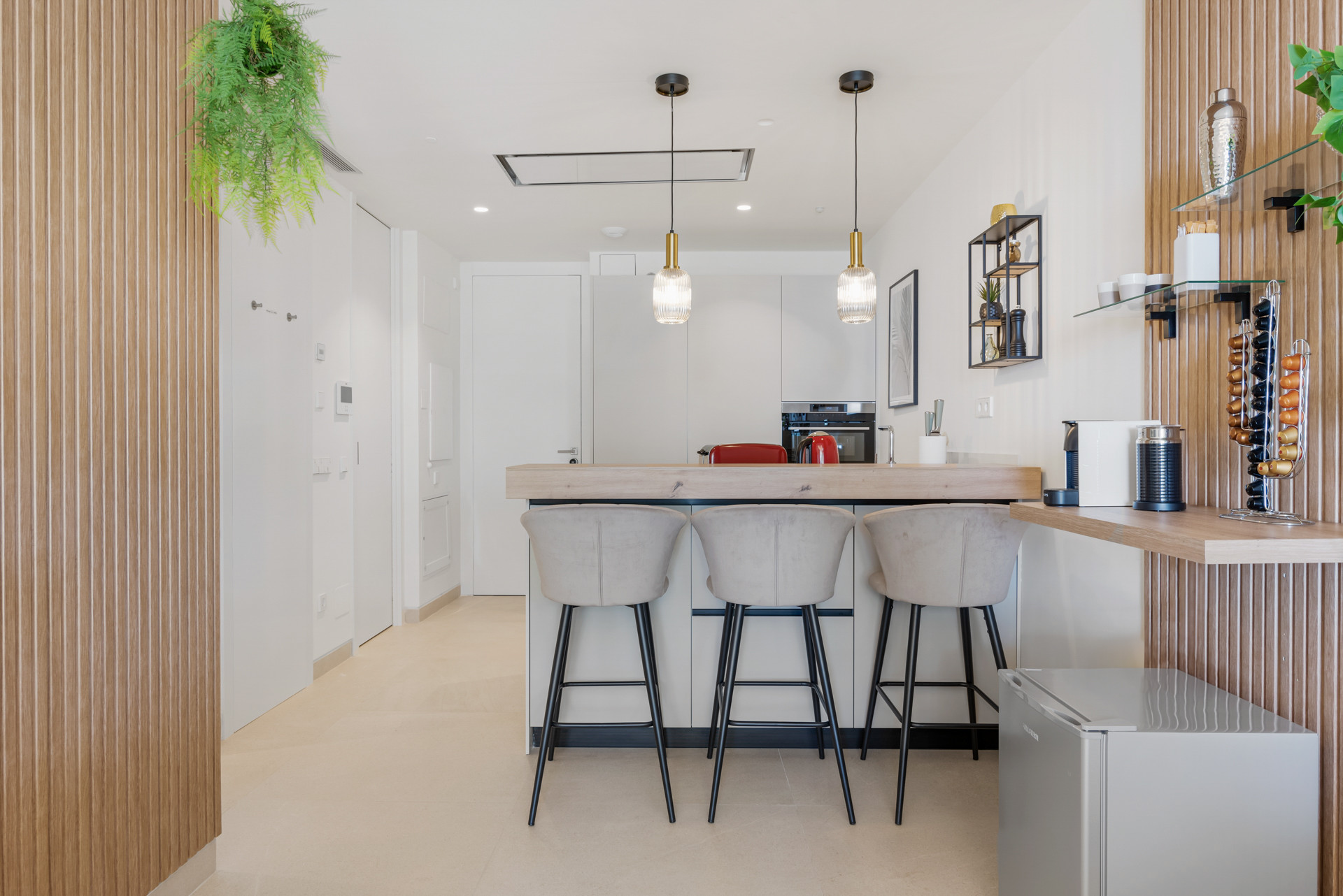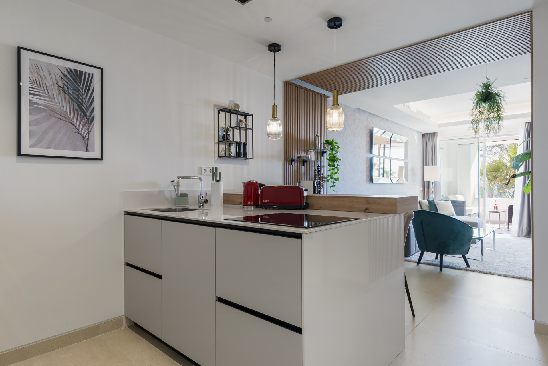 Entra y déjate cautivar por los amplios interiores, inundados de luz natural que se filtra a través de las grandes ventanas de suelo a techo. La sala de estar, la cocina y el comedor de planta abierta se funden a la perfección, creando una atmósfera acogedora para el relax y el entretenimiento.