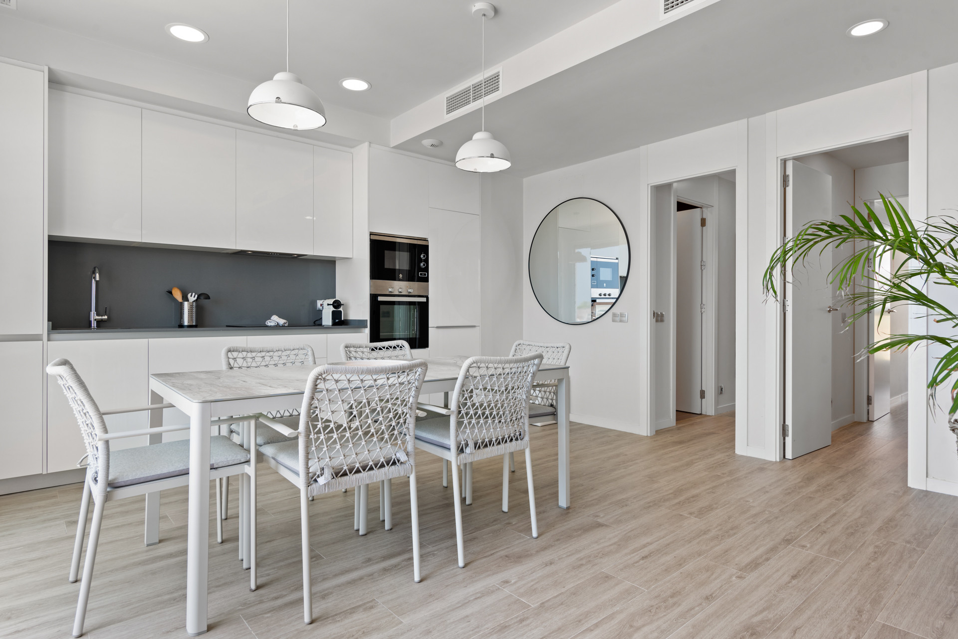Entra y déjate cautivar por los amplios interiores, inundados de luz natural que se filtra a través de las grandes ventanas de suelo a techo. La sala de estar, la cocina y el comedor de planta abierta se funden a la perfección, creando una atmósfera acogedora para el relax y el entretenimiento.