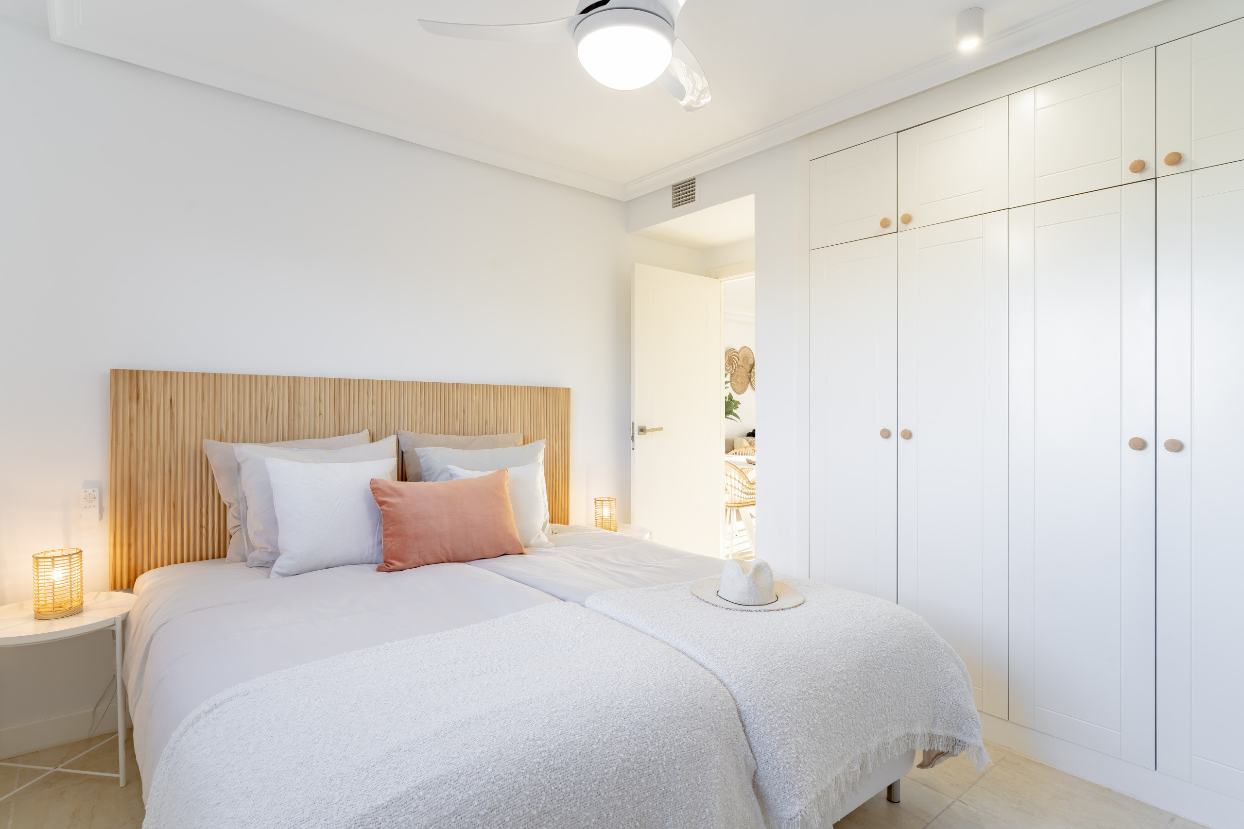 Retírate a la generosa habitación principal, con baño en suite con doble lavabo y ducha de obra, o relájate en la comodidad de la espaciosa segunda habitación con armarios empotrados, ambas diseñadas pensando en tu máximo confort.