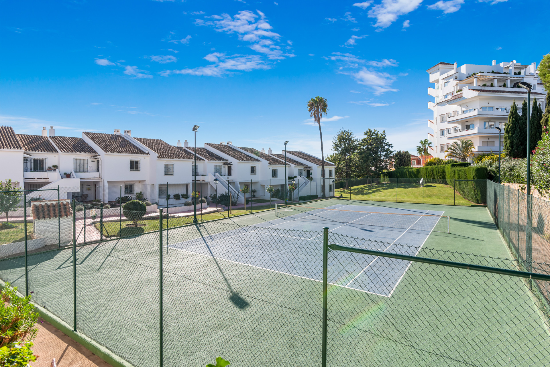 La generosa terraza privada es un verdadero punto destacado, ofreciendo hermosas vistas al atardecer y al mar desde su posición elevada. Con zonas de comedor y salón, proporciona el escenario perfecto para veladas relajadas y entretenimiento al aire libre. Aldea Blanca es conocida por sus exuberantes jardines paisajísticos y áreas de piscina comunitarias excepcionalmente bien mantenidas, creando un remanso de paz dentro de un complejo cerrado y seguro. Idealmente ubicado, el apartamento está a una corta distancia a pie de Puerto Banús, tiendas, restaurantes y la playa, ofreciendo tanto comodidad como estilo de vida por igual. Tenga en cuenta que el edificio no tiene ascensor.