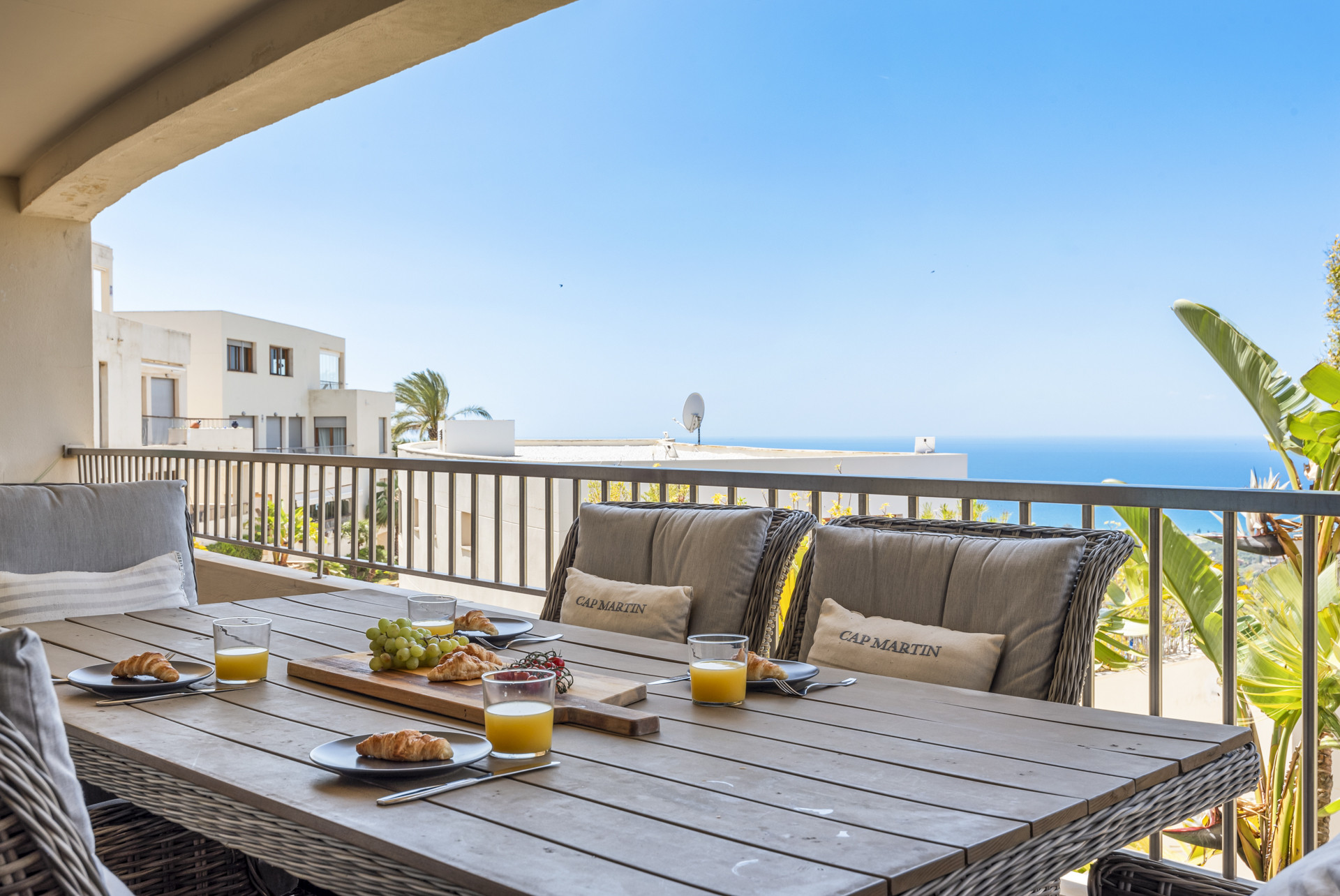 El apartamento cuenta con 2 dormitorios y 2 baños. El dormitorio principal sale al balcón y prácticamente te permite despertarte con la vista del Mediterráneo. El segundo dormitorio está más diseñado para los niños y cuenta con una litera con una cama plegable y una cama individual adicional.