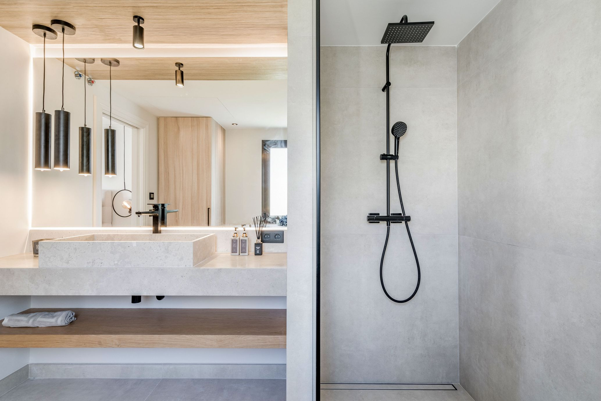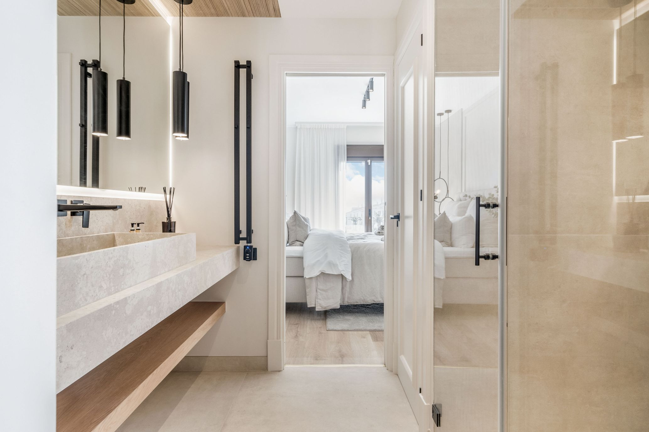 Lo que realmente distingue este ático es su extraordinario espacio de vida al aire libre. Además de los tres dormitorios principales, hay una habitación extra en la planta superior que conduce a la terraza en la azotea, con un sofá-cama que puede alojar a 2 huéspedes adicionales. La azotea es realmente impresionante, con vistas panorámicas al mar increíbles, amplias áreas de descanso, tumbonas, un espacio para comer al aire libre, zona de barbacoa y una piscina privada de inmersión ubicada para disfrutar de los mejores paisajes. Diseñada tanto para la relajación como para el entretenimiento, esta terraza superior crea un entorno inolvidable desde el amanecer hasta el atardecer, mientras que la terraza inferior continúa el flujo interior-exterior con más espacio para relajarse y disfrutar de las vistas.
