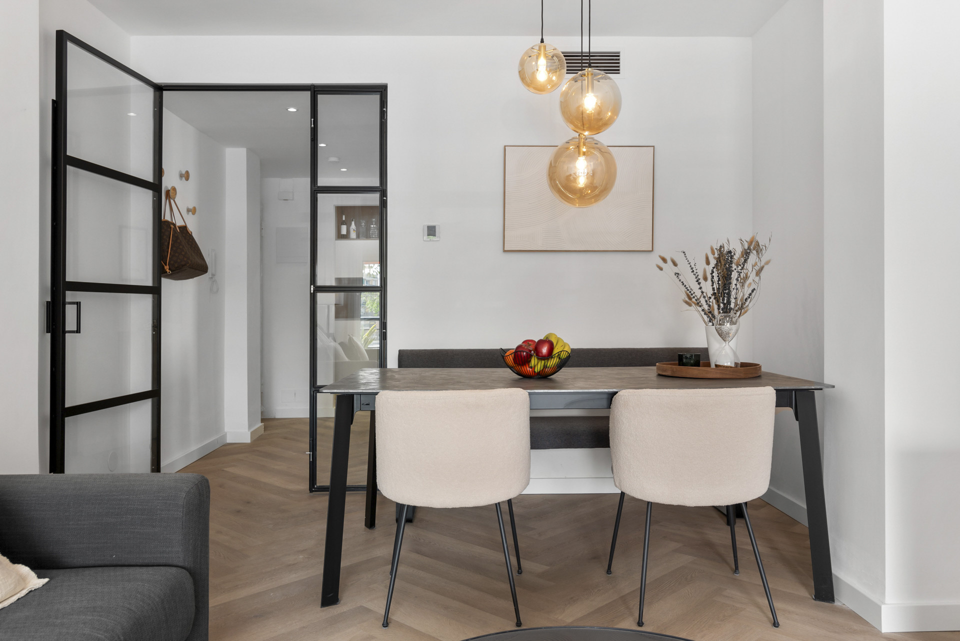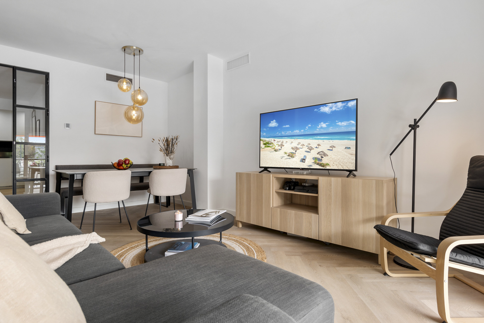 Al entrar en el apartamento, lo recibe una atmósfera de confort relajante. El apartamento cuenta con un diseño espacioso con colores, muebles y decoración frescos, creando un ambiente elegante y acogedor.