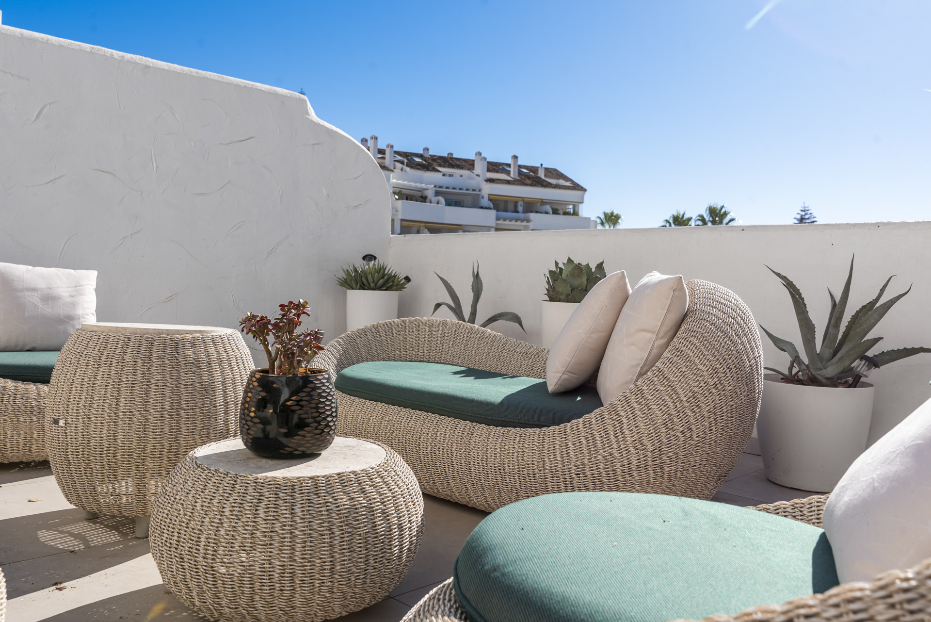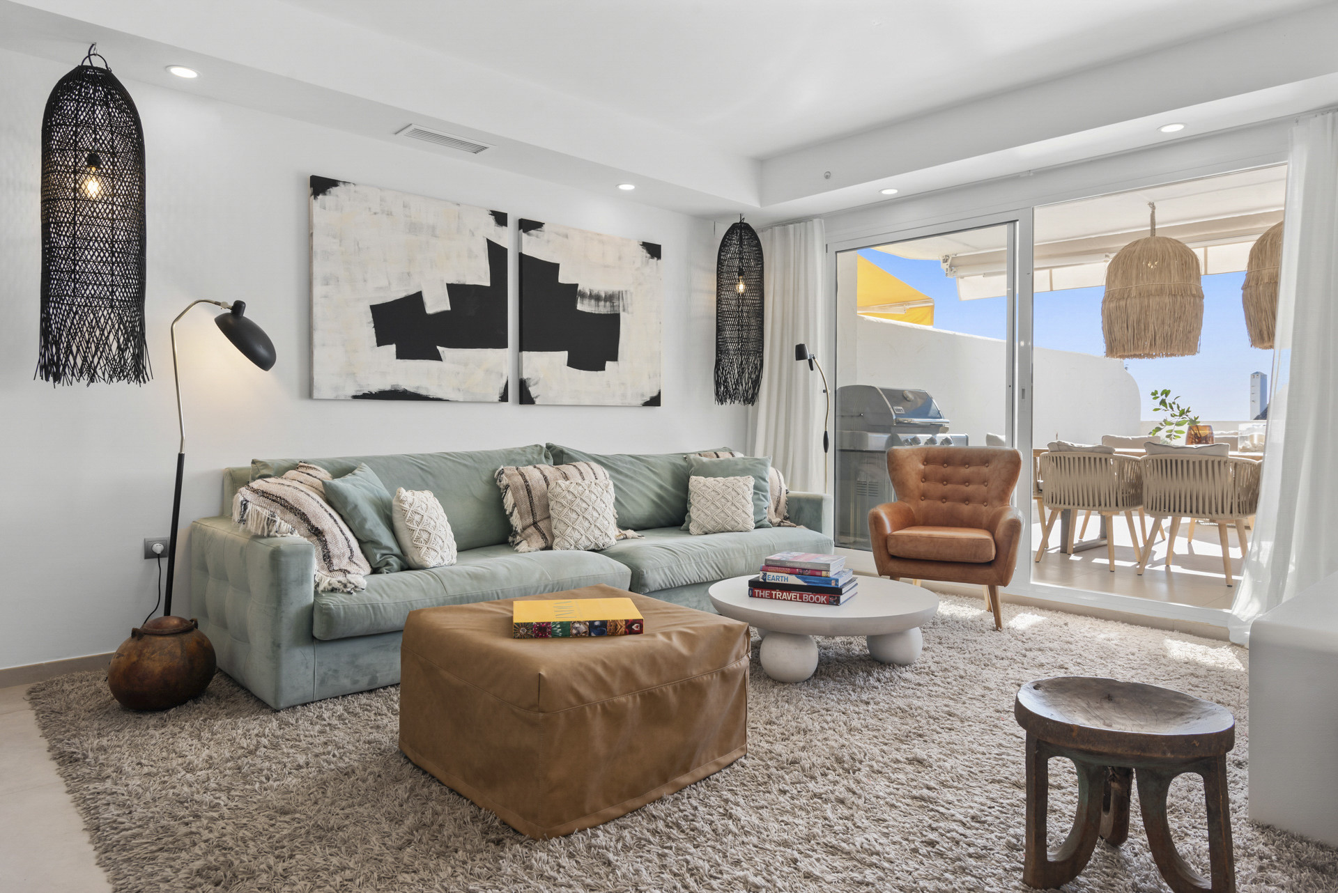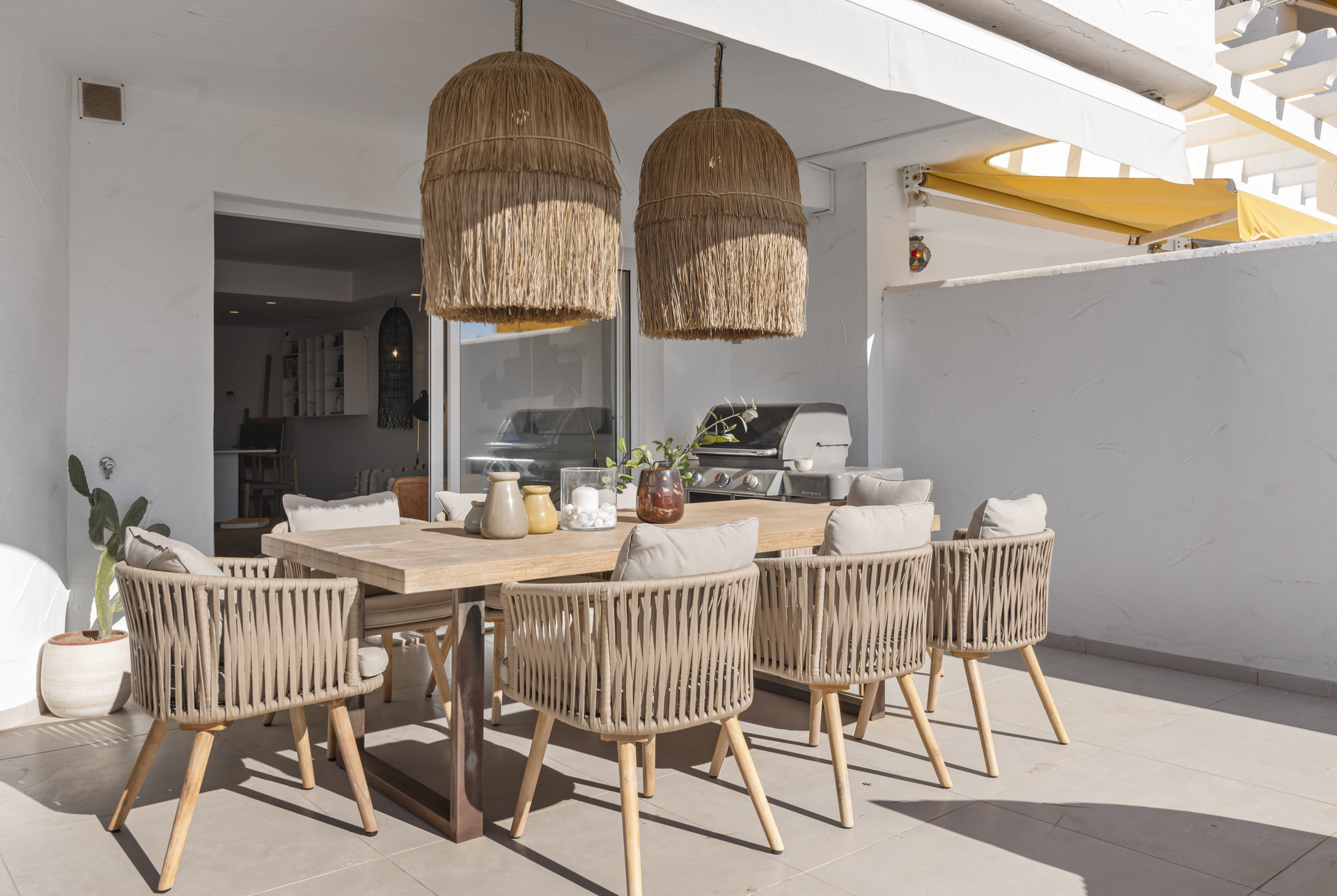 Lo más destacado de esta impresionante residencia es su terraza privada, donde podrá relajarse y disfrutar del sol del Mediterráneo mientras disfruta de impresionantes vistas de los jardines comunitarios, la espectacular piscina y las aguas azules del mar Mediterráneo.