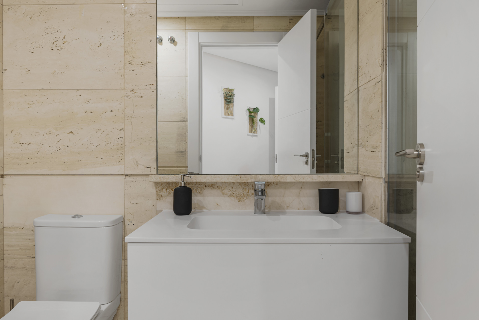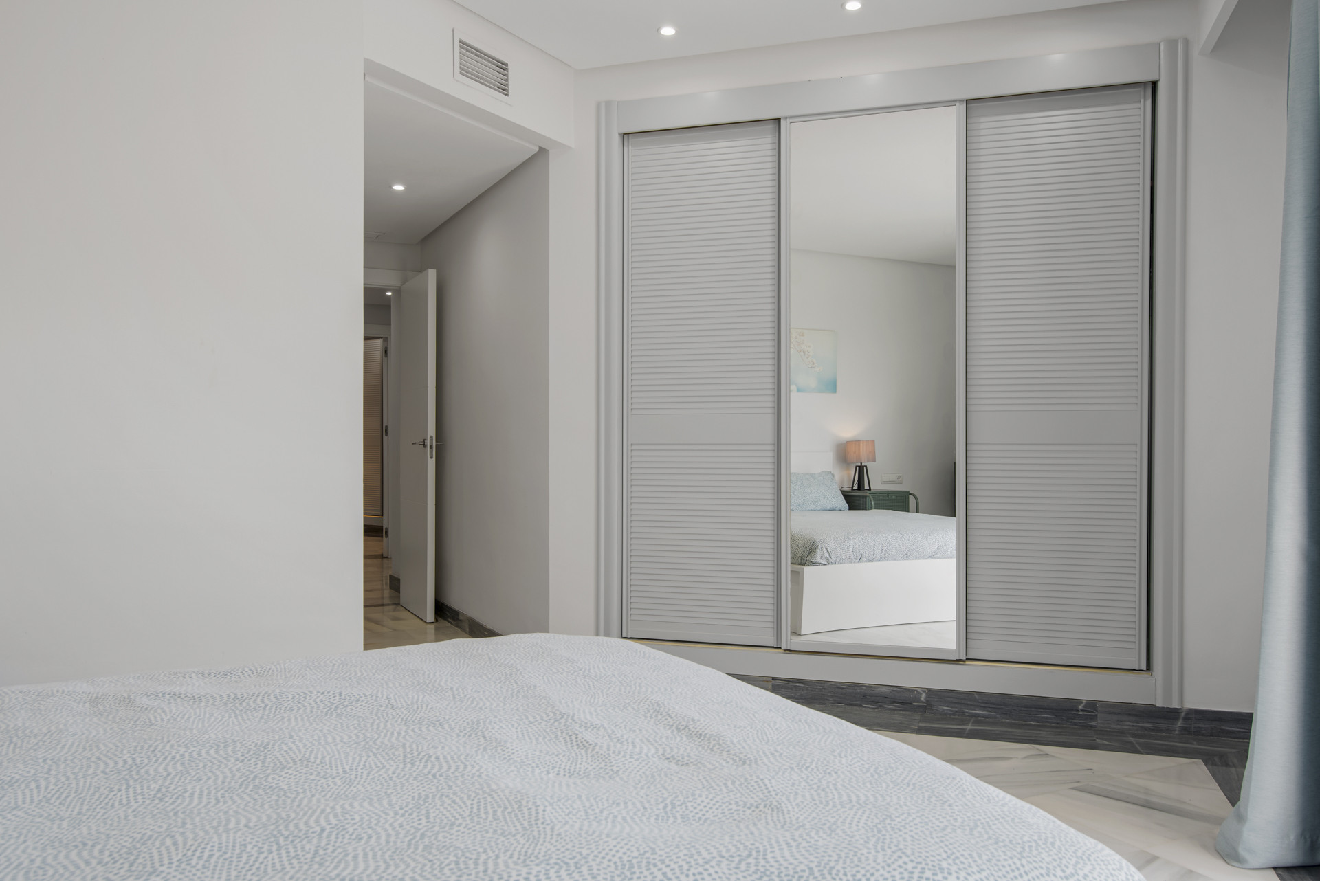 El apartamento cuenta con 2 dormitorios y 2 baños. El dormitorio principal sale al balcón y prácticamente te permite despertarte con la vista del Mediterráneo. El segundo dormitorio está más diseñado para los niños y cuenta con una litera con una cama plegable y una cama individual adicional.
