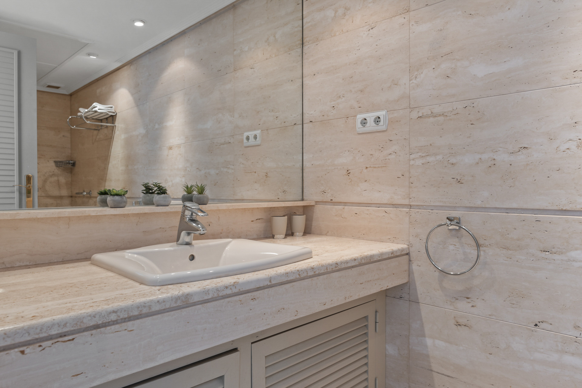 El apartamento cuenta con 2 dormitorios con un baño en suite. Se abre a un balcón y te permite despertar con la vista del Mediterráneo. Los dos dormitorios tienen camas dobles.