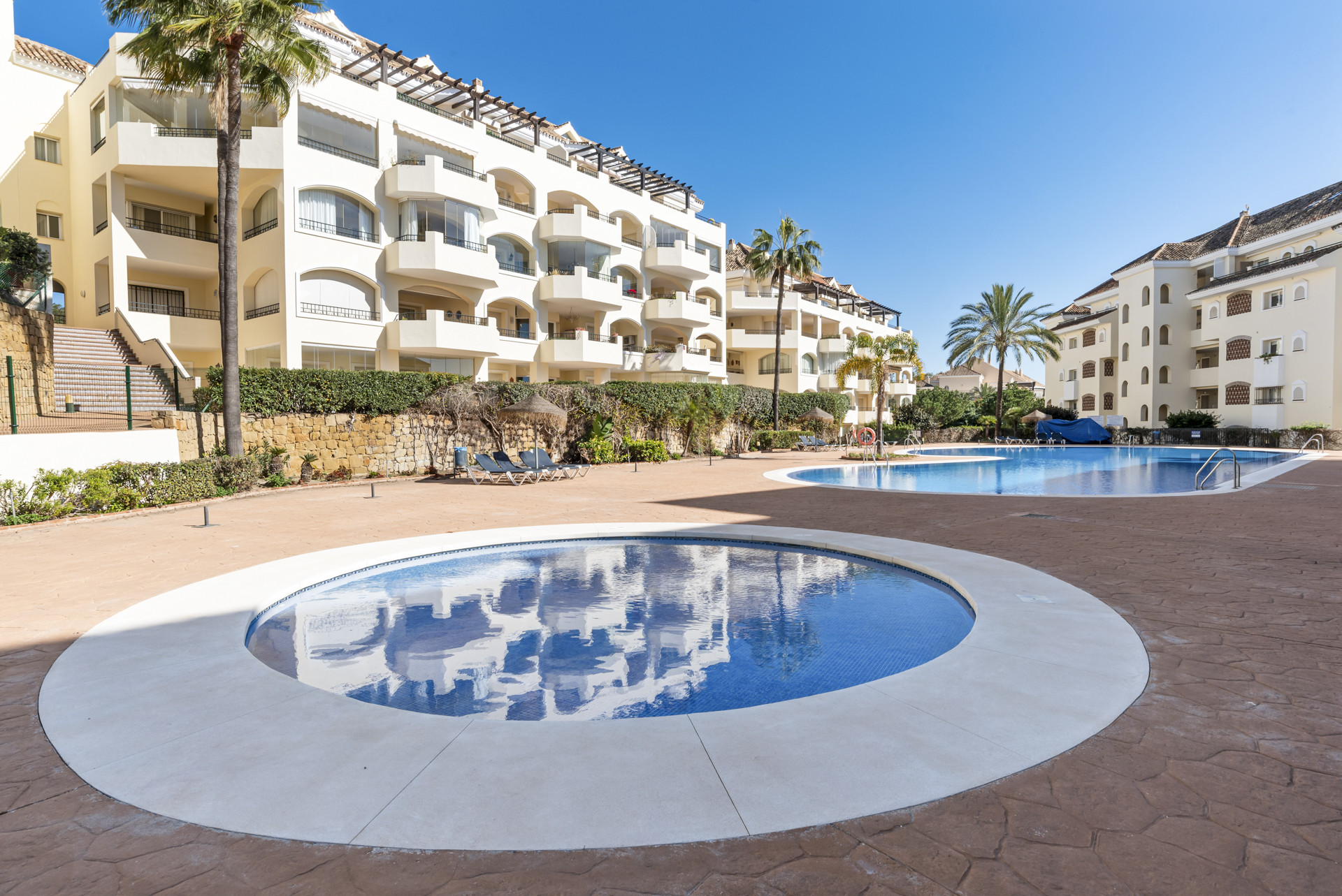 La generosa terraza privada es un verdadero punto destacado, ofreciendo hermosas vistas al atardecer y al mar desde su posición elevada. Con zonas de comedor y salón, proporciona el escenario perfecto para veladas relajadas y entretenimiento al aire libre. Aldea Blanca es conocida por sus exuberantes jardines paisajísticos y áreas de piscina comunitarias excepcionalmente bien mantenidas, creando un remanso de paz dentro de un complejo cerrado y seguro. Idealmente ubicado, el apartamento está a una corta distancia a pie de Puerto Banús, tiendas, restaurantes y la playa, ofreciendo tanto comodidad como estilo de vida por igual. Tenga en cuenta que el edificio no tiene ascensor.