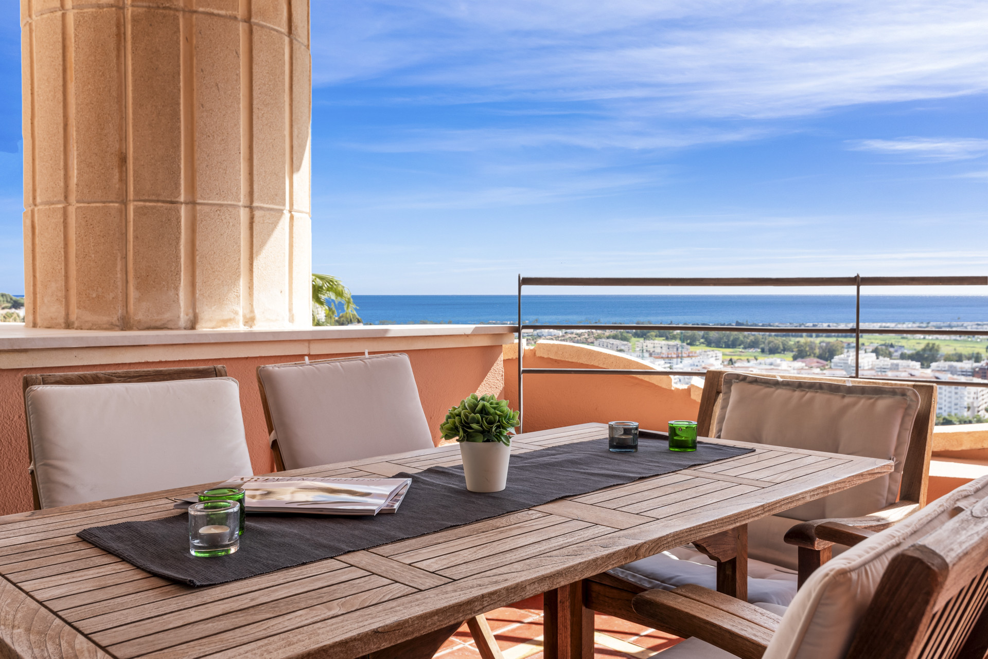 La propiedad presume de vistas increíbles que se extienden desde el campo de golf hasta el mar, las cuales pueden disfrutarse tanto desde la generosa terraza como desde los espacios principales de estar. Ya sea que estés relajándote al aire libre o entreteniendo invitados, el entorno es absolutamente espectacular.