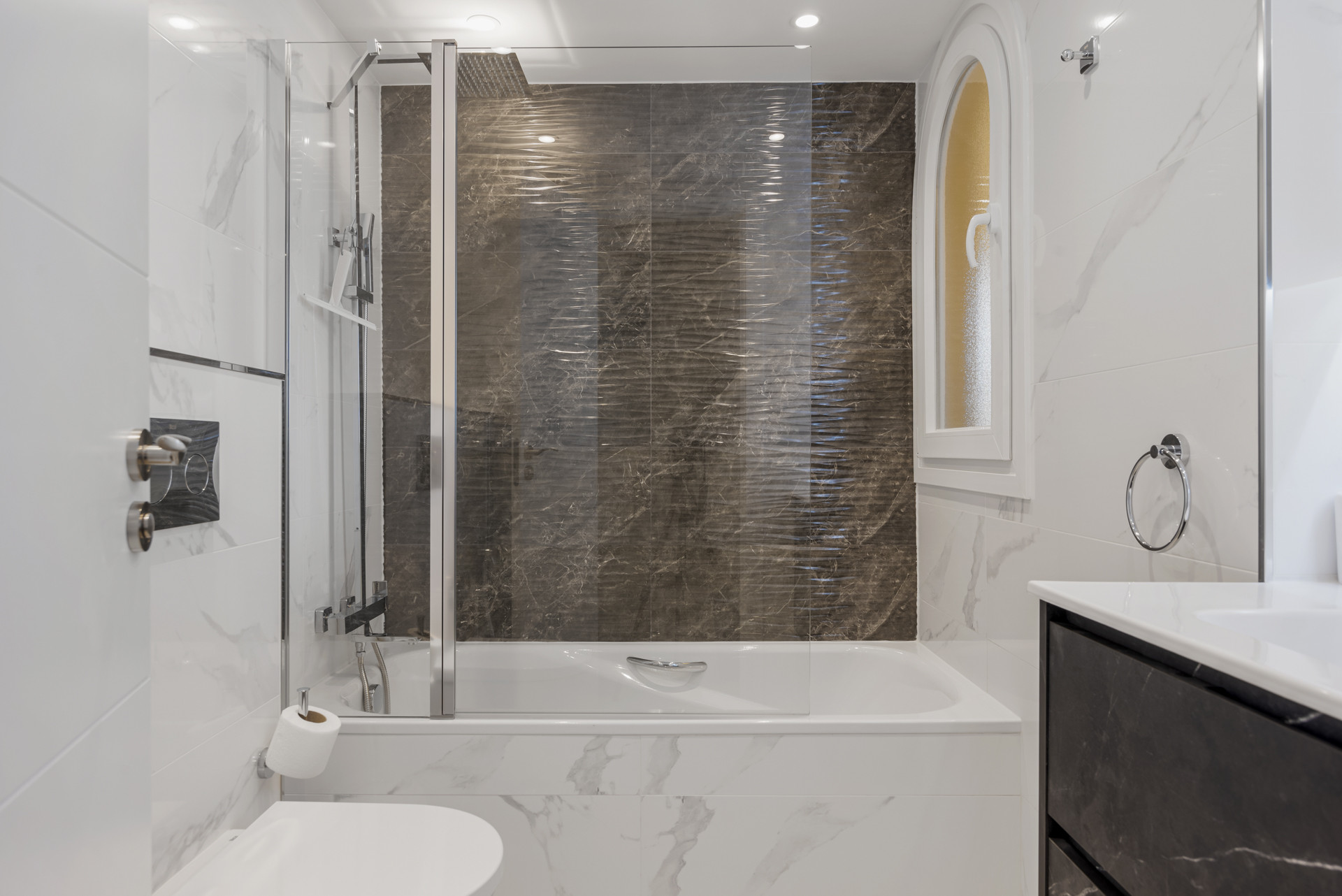 El apartamento cuenta con cuatro dormitorios de generoso tamaño, cada uno diseñado pensando en la comodidad. El dormitorio principal incluye un amplio cuarto de baño con ducha, mientras que el segundo dormitorio cuenta con su propio baño en suite. Los dormitorios tercero y cuarto comparten un cuarto de baño bien equipado, y hay un aseo de invitados adicional, lo que hace un total de cuatro baños en toda la propiedad.