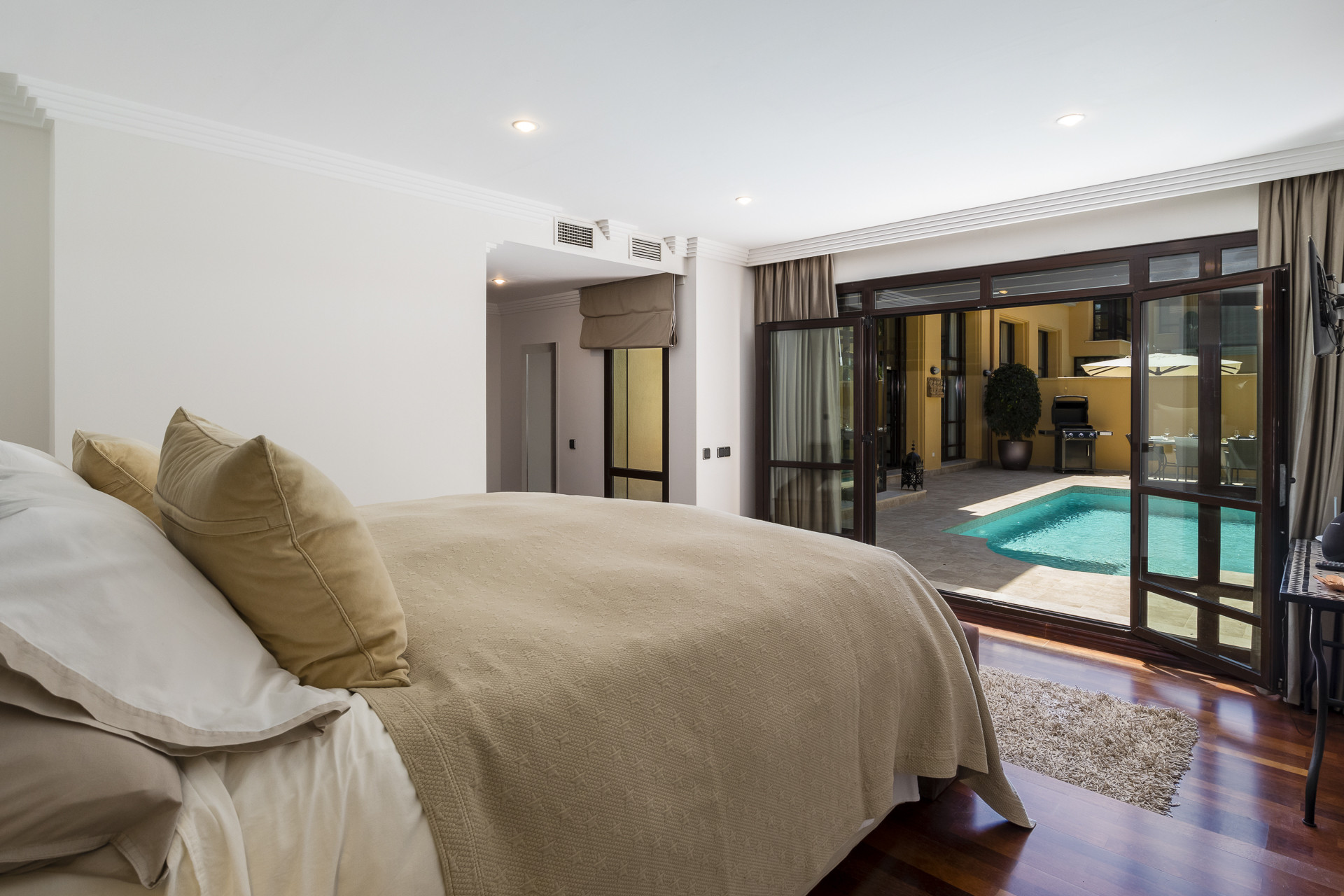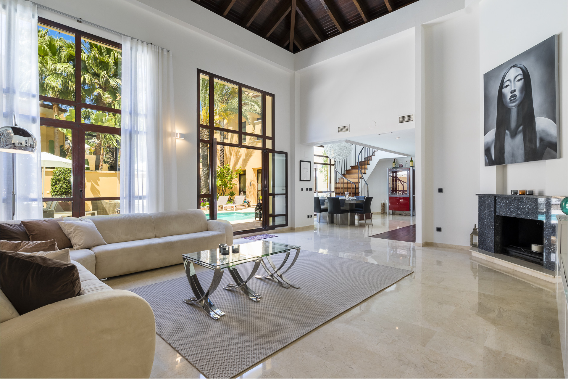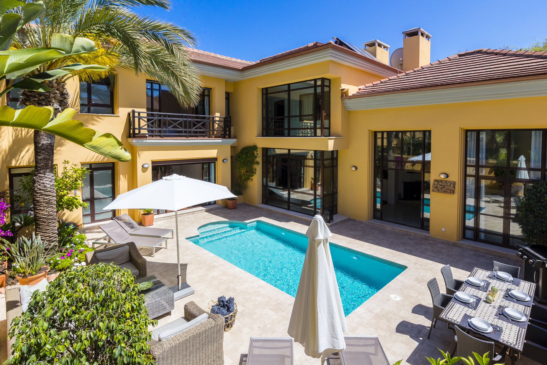 El verdadero punto destacado espera arriba: una espectacular terraza privada en la azotea con una piscina de inmersión, tumbonas, zona de comedor y muebles. Desde aquí, disfrute de impresionantes vistas abiertas y absorba el sol de Marbella en total privacidad.