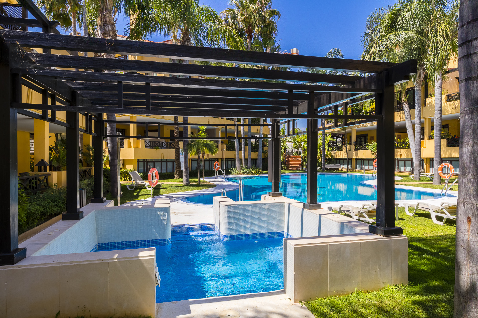 Los residentes también se benefician de dos grandes piscinas comunitarias ubicadas dentro de la urbanización segura y bien mantenida, ofreciendo un ambiente similar a un resort durante todo el año.