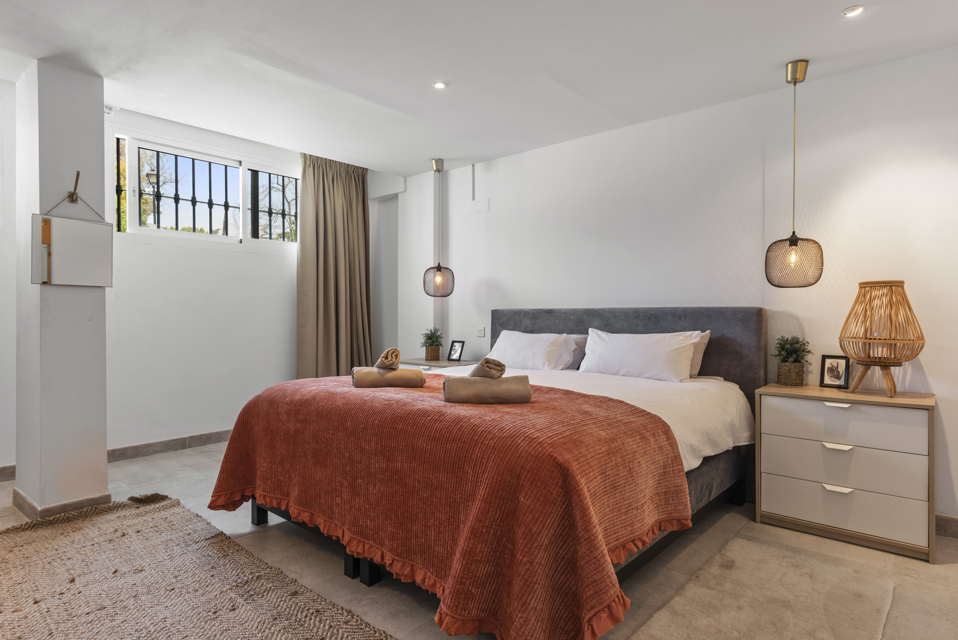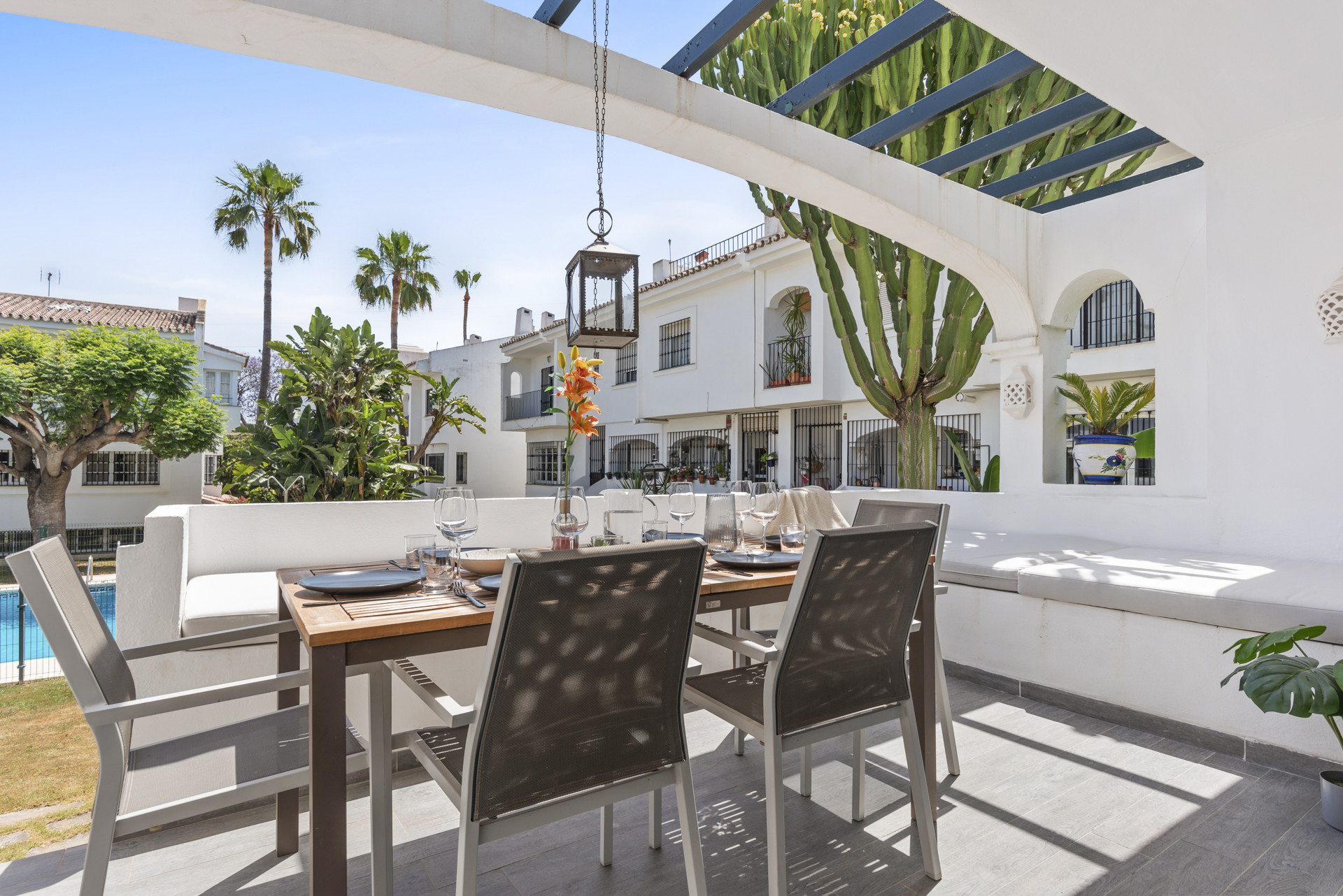La casa adosada en Marbella posee 3 dormitorio(s) y capacidad para 6 personas. Alojamiento de 190 m² acogedor y muebles nuevos, con vistas al jardín y a la piscina. Se encuentra a 61 m del aeropuerto internacional, 800 m del supermercado, 1 km del restaurante, 1 km de la cafetería, 1 km del campo de Golf, 2 km de la playa de arena, 2 km de la ciudad, 5 km del hospital, 42 km del parque acuático, 61 km del aeropuerto y está ubicado en una zona ideal para familias y dentro de una urbanización.Dispone de jardín, 18 m² de terraza, lavadora, secadora, plancha, caja fuerte, acceso internet (wifi), secador, calefacción central, aire acondicionado, piscina comunitaria, parking aire libre en mismo edificio, 2 Televisores.La cocina americana, de inducción, está equipada con nevera, microondas, horno, congelador, lavavajillas, vajilla/cubertería, utensilios/cocina, cafetera, tostadora, hervidor de agua y batería de cocina.