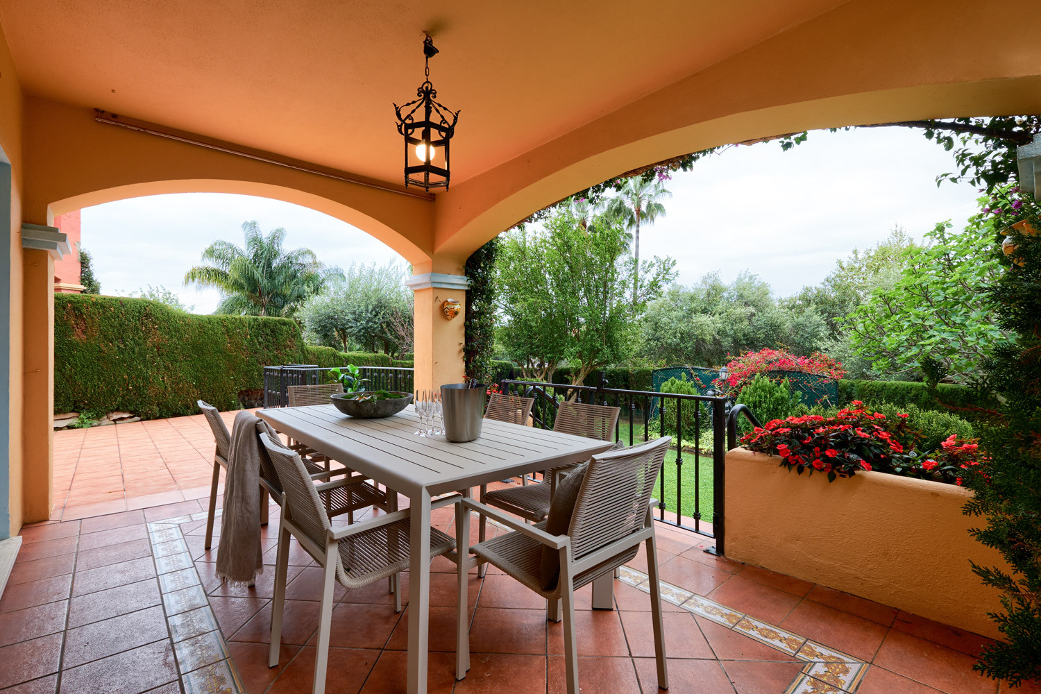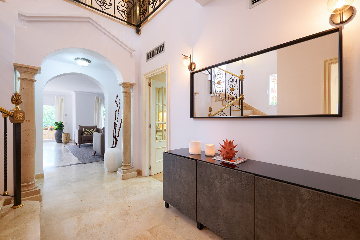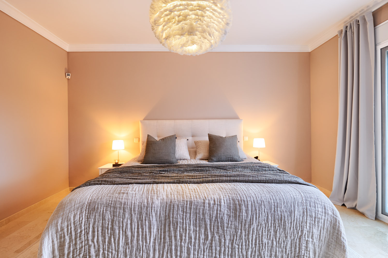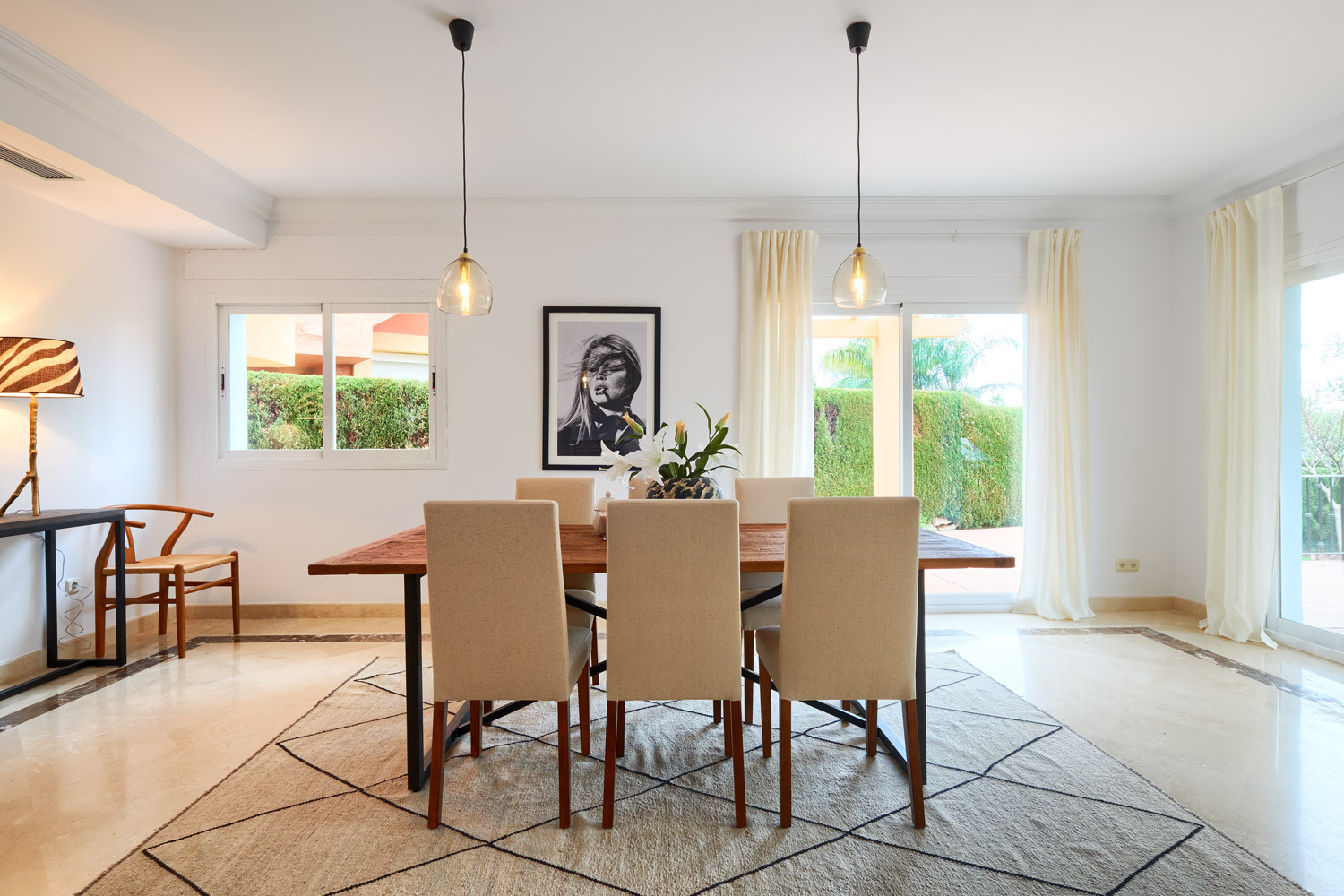 Esta casa adosada de estilo andaluz en la Urbanización Alzambra, Nueva Andalucía, ofrece una combinación perfecta de encanto mediterráneo e interiores modernos de inspiración escandinava. Los tonos neutros, las texturas suaves y la decoración elegante crean un ambiente cálido y acogedor en sus 4 espaciosas habitaciones y 3 baños. Cada habitación cuenta con armarios empotrados y ropa de cama lujosa, mientras que la suite principal incluye una terraza privada, perfecta para tomar un café por la mañana o relajarse por la noche. La sala de estar de planta abierta, bañada por la luz natural, se conecta sin esfuerzo con la cocina totalmente equipada y el comedor, complementados con una acogedora chimenea y cómodos asientos, lo que la hace ideal tanto para estancias cortas como largas.