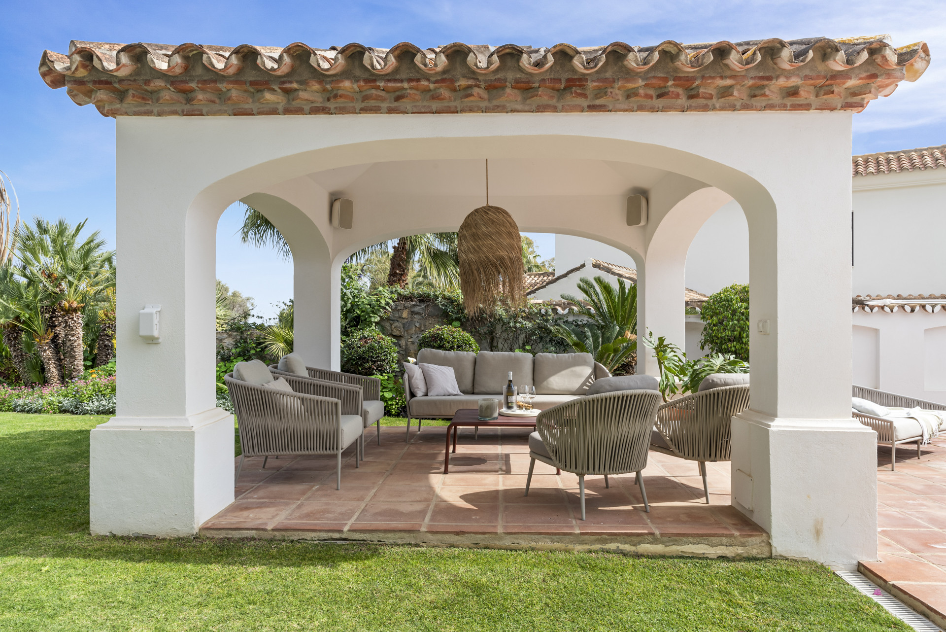Villa Aguacate es una impresionante villa de 4 dormitorios (5 camas) que se extiende por 350 m², ubicada en el tranquilo enclave residencial de El Paraiso, Marbella. Ofreciendo la perfecta fusión del encanto andaluz y el diseño contemporáneo, esta casa es ideal para quienes buscan comodidad, tranquilidad y comodidades modernas. Recientemente renovada, la villa cuenta con un luminoso y espacioso salón que se extiende sin problemas a una pintoresca terraza con vistas al exuberante jardín y a la piscina de agua salada. Un espacio cubierto para comedor al aire libre crea el escenario perfecto para comidas al fresco, mientras que la cocina moderna, totalmente equipada y de nueva construcción, presume de electrodomésticos de primera línea, incluyendo un refrigerador doble, garantizando un almacenamiento amplio y conveniente para los huéspedes.