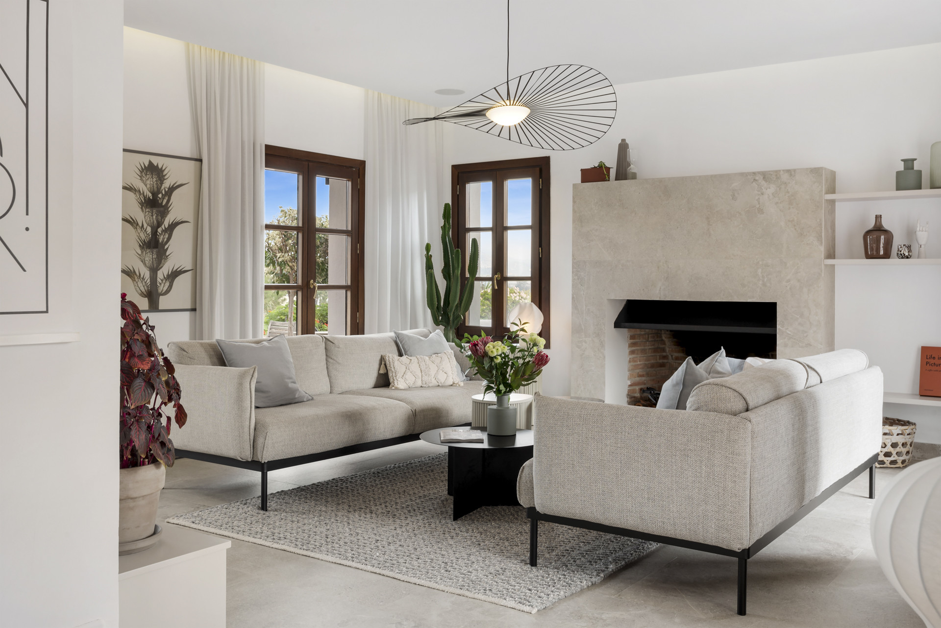 Villa Corazón es un refugio de lujo en la prestigiosa comunidad cerrada de El Herrojo en Benahavis, que ofrece una combinación perfecta de sofisticación moderna y belleza natural. Esta impresionante villa de tres niveles cuenta con cinco amplias habitaciones, cada una con baño privado para una comodidad y privacidad óptimas. La suite principal es un verdadero santuario, con vestidor y baños dobles, uno para él y otro para ella. Diseñada con una encantadora estética española pero renovada con un elegante espíritu escandinavo, la villa combina a la perfección la calidez tradicional con la elegancia contemporánea. Un patio interior llena la casa de luz natural, lo que mejora el ambiente abierto y aireado, mientras que las áreas de estar y comedor brindan un espacio acogedor tanto para la relajación como para el entretenimiento.