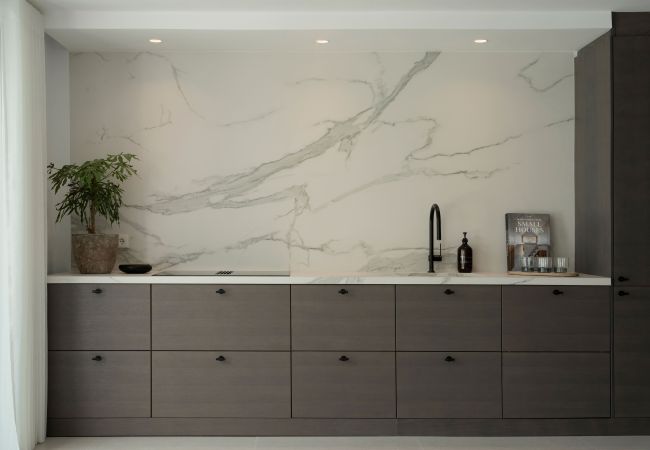 Entretenga con facilidad en el amplio espacio de estar de planta abierta, anclado por una cocina Miele elegante y totalmente integrada y caldeado por una acogedora chimenea. Grandes puertas corredizas de vidrio lo conducen hacia la característica destacada de la villa: una piscina de mármol infinita elevada, enmarcada por vegetación tropical y piedra natural impresionante. La cocina al aire libre y la terraza para comer crean el escenario perfecto para tardes relajadas o cenas al atardecer bajo las estrellas, mientras que las barandillas de vidrio preservan las vistas panorámicas sin interrupciones.