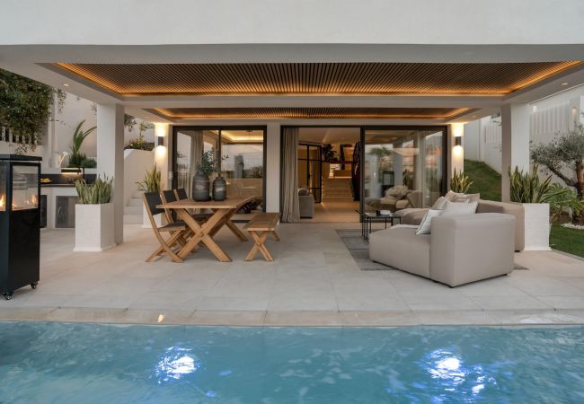Bienvenidos a Villa Celeste, un retiro elegante y sereno de 4 dormitorios y 4 baños ubicado en el corazón de Nueva Andalucía, Marbella. Diseñada para familias y grupos que buscan lujo y comodidad, esta villa ofrece espacios de estar generosos, amenidades de primera clase y una ubicación inmejorable a solo minutos de la playa, los campos de golf y la vibrante energía de Puerto Banús.