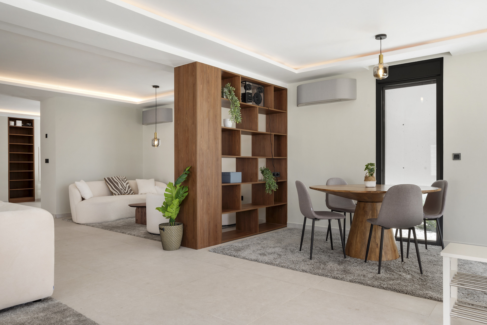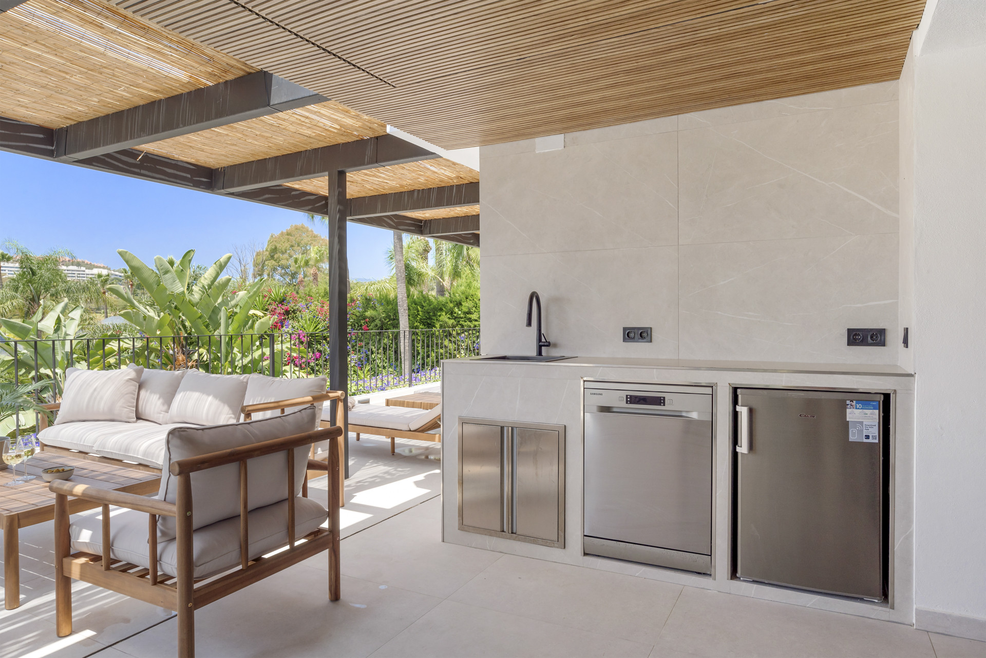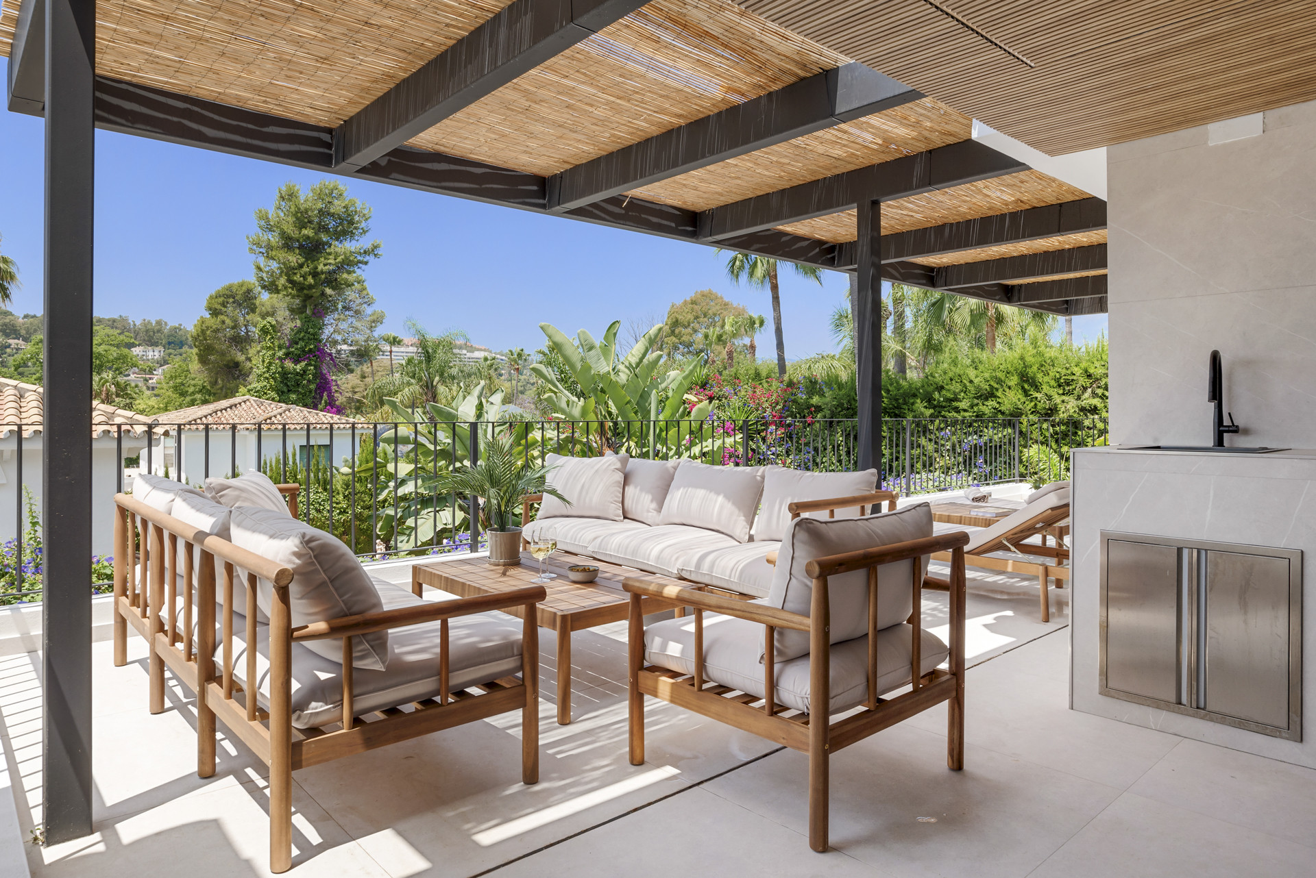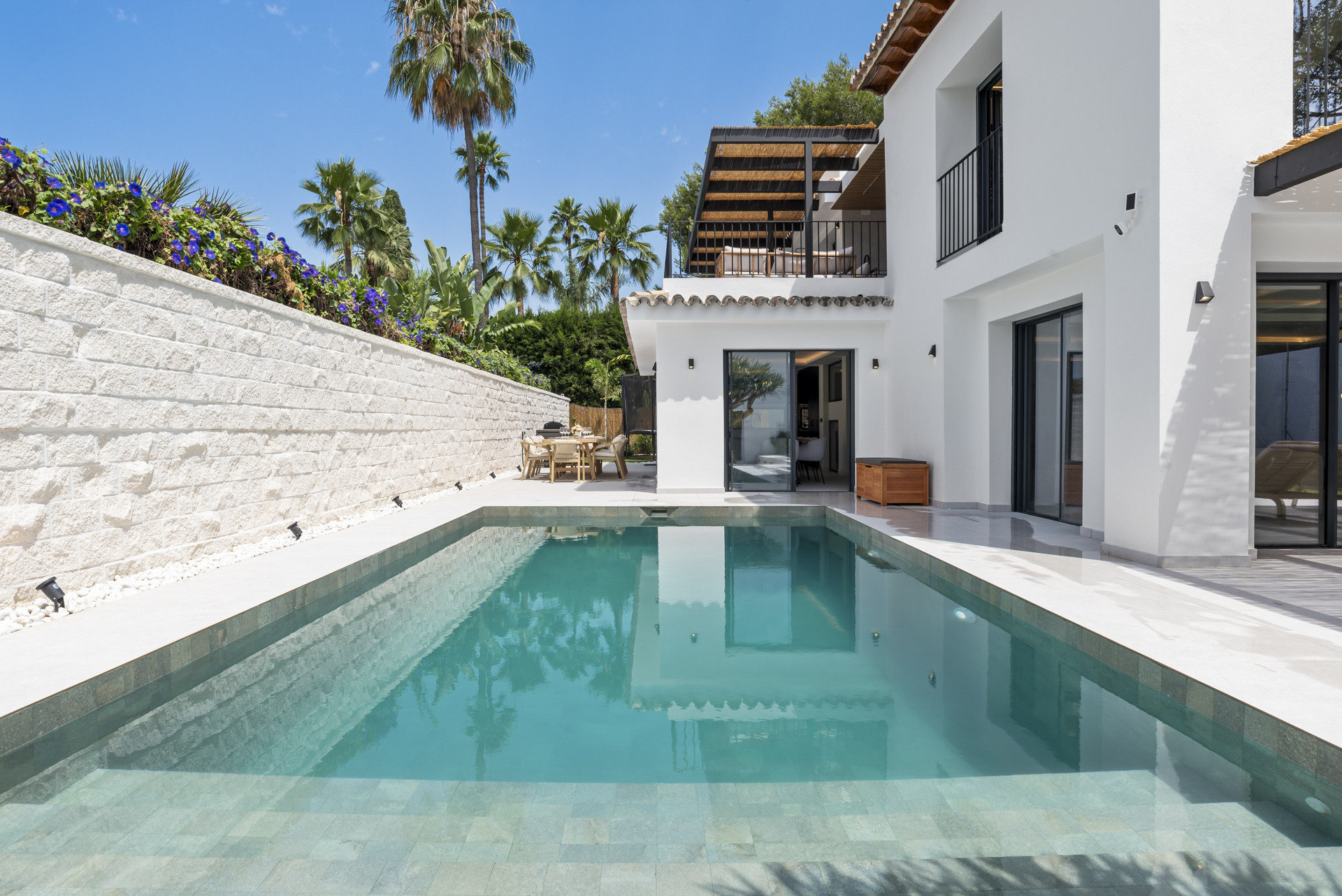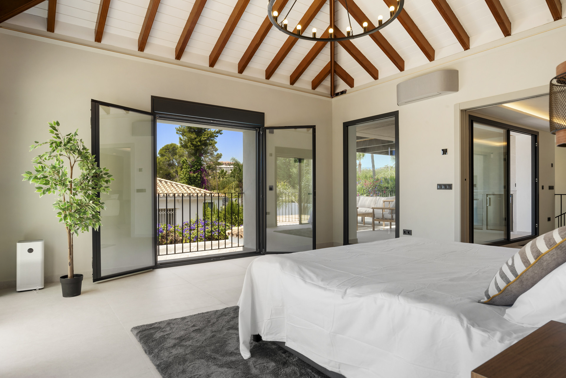 Bienvenido a Villa La Perla! Ubicada en el corazón de Nueva Andalucía, esta exquisitamente renovada villa de 6 dormitorios y 6 baños ofrece una perfecta combinación de confort contemporáneo y un estilo atemporal. Situada a poca distancia a pie de restaurantes de primera categoría, bares de moda, tiendas boutique y servicios esenciales como supermercados, la ubicación no podría ser más conveniente. En el interior, la casa presume un diseño de planta abierta sofisticado con acabados elegantes en todo su espacio: desde baños de piedra pulida y paredes con paneles de madera acanalada hasta la paleta de colores neutros relajantes y los techos de doble altura en las principales áreas de estar.