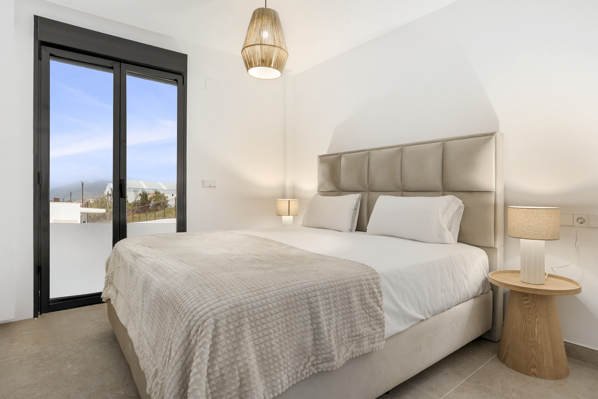 La propriété dispose de trois chambres spacieuses, deux salles de bains complètes et un toilette supplémentaire pour les invités, pouvant accueillir confortablement jusqu'à six personnes. L'intérieur est lumineux et contemporain, avec des finitions de haute qualité et un design moderne et épuré partout, créant une atmosphère calme et élégante.