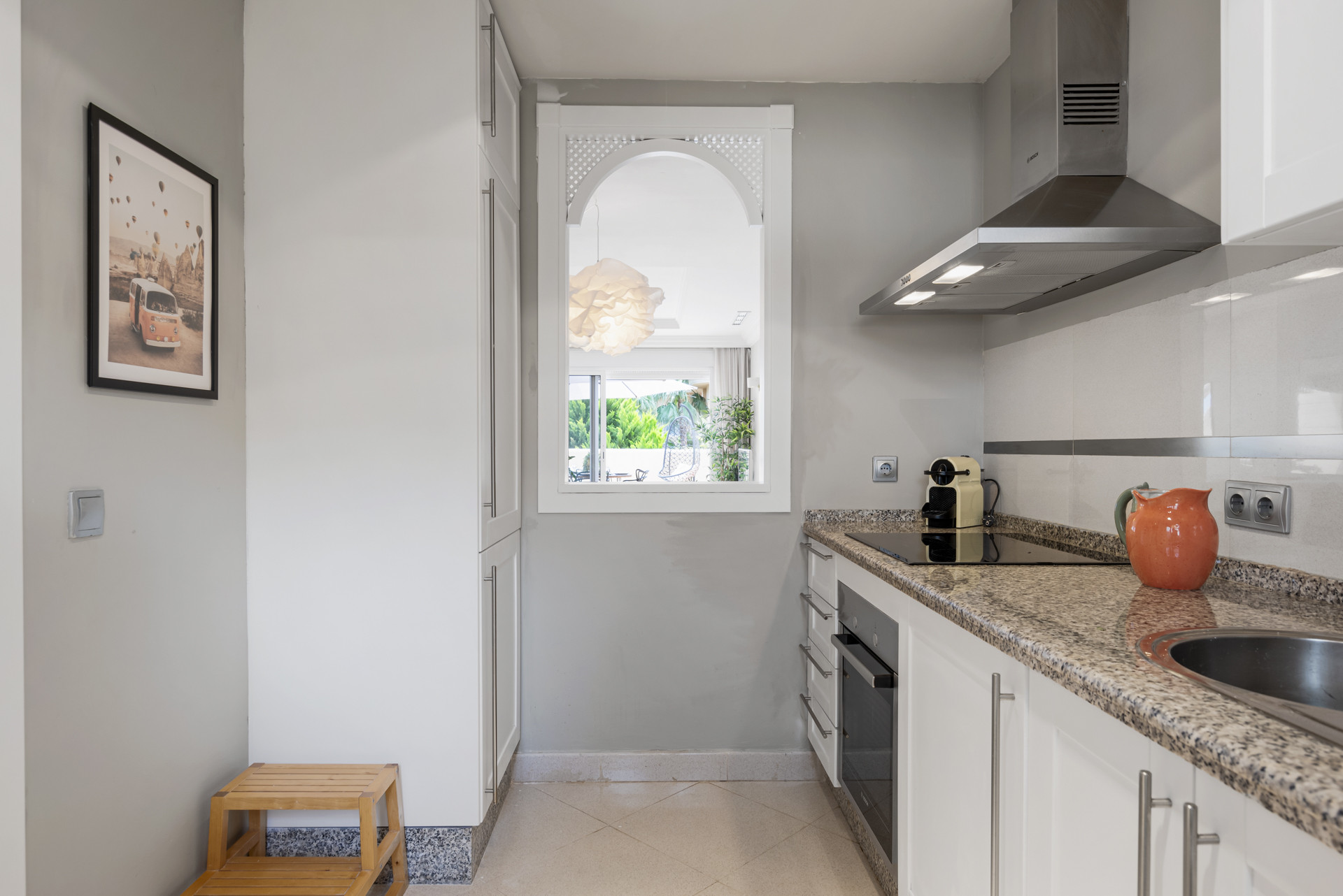 La terrasse privée généreuse est un point fort véritable, offrant de magnifiques vues sur le coucher de soleil et la mer depuis sa position surélevée. Avec des espaces repas et salon, elle offre le cadre parfait pour des soirées détendues et des divertissements en extérieur. Aldea Blanca est réputée pour ses jardins paysagers luxuriants et ses espaces de piscine communaux exceptionnellement bien entretenus, créant un havre de paix au sein d'un complexe sécurisé. Idéalement situé, l'appartement est à distance de marche de Puerto Banús, des magasins, des restaurants et de la plage, offrant à la fois commodité et style de vie à parts égales. Veuillez noter que le bâtiment ne dispose pas d'ascenseur.