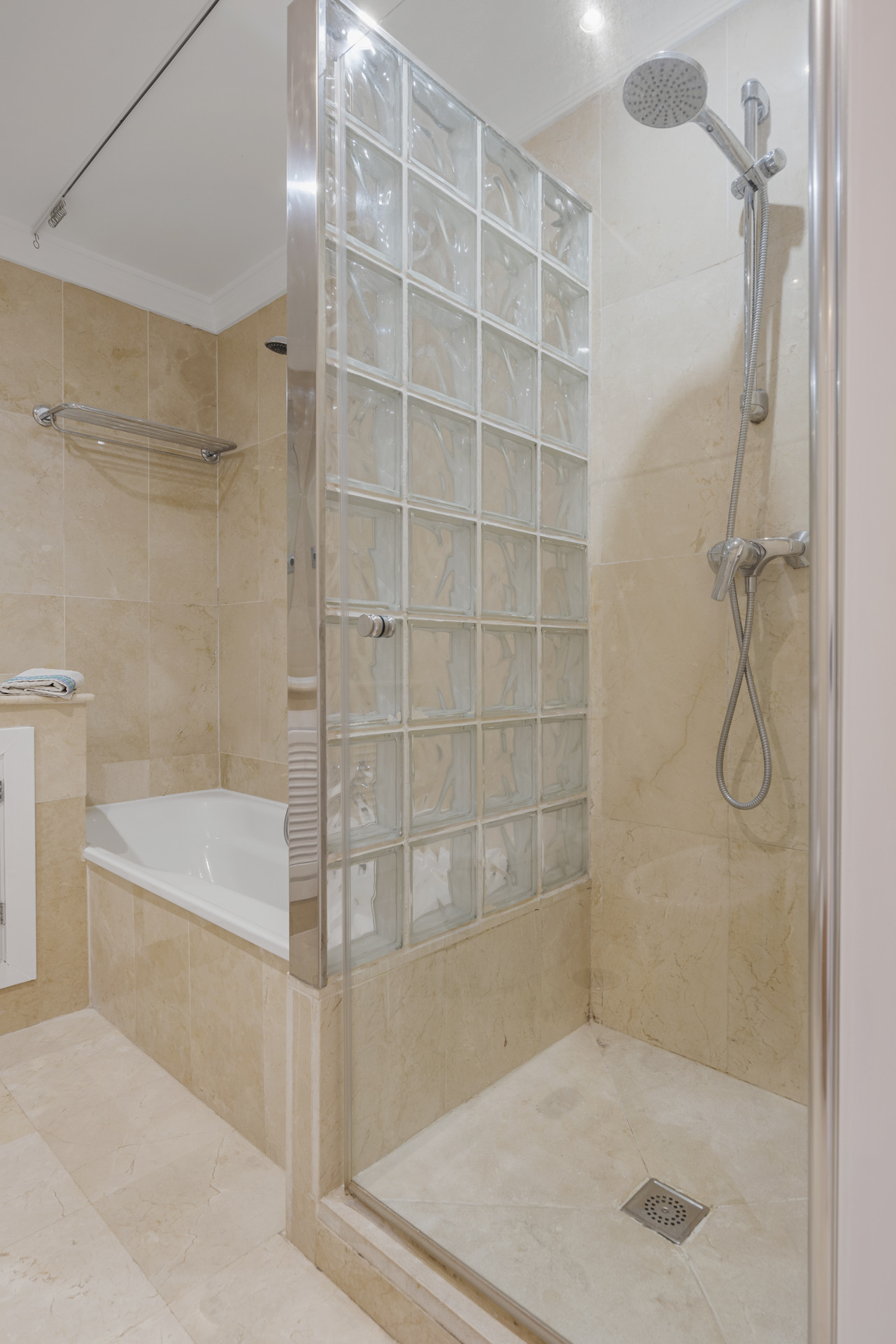 Il y a deux chambres lumineuses et spacieuses. La chambre principale comprend une salle de bains attenante avec douche et baignoire et dispose de portes vitrées donnant sur la terrasse. La deuxième chambre dispose d'un lit double, d'un grand espace de rangement et d'une salle de bains juste à l'extérieur de la porte.