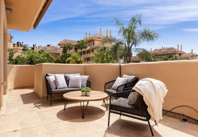 Bienvenue à Casa Cielo ! Casa Cielo est un appartement de 2 chambres et 1 salle de bain magnifiquement présenté à Aldea Blanca, offrant un confort moderne dans l'une des communautés fermées les plus recherchées de Nueva Andalucía. L'appartement présente une disposition ouverte lumineuse où les espaces de vie, de salle à manger et de cuisine se fondent harmonieusement, créant un environnement spacieux et convivial rempli de lumière naturelle. De grandes portes coulissantes en verre relient directement l'intérieur à la terrasse, renforçant la sensation d'espace aéré. L'une des chambres se fond sans effort dans l'espace de vie, créant un espace flexible qui peut servir de salon supplémentaire ou d'espace pour invités tout en conservant l'esthétique ouverte et contemporaine de l'appartement. Un sol en bois chaleureux et des tons neutres donnent à la maison une atmosphère calme et moderne.