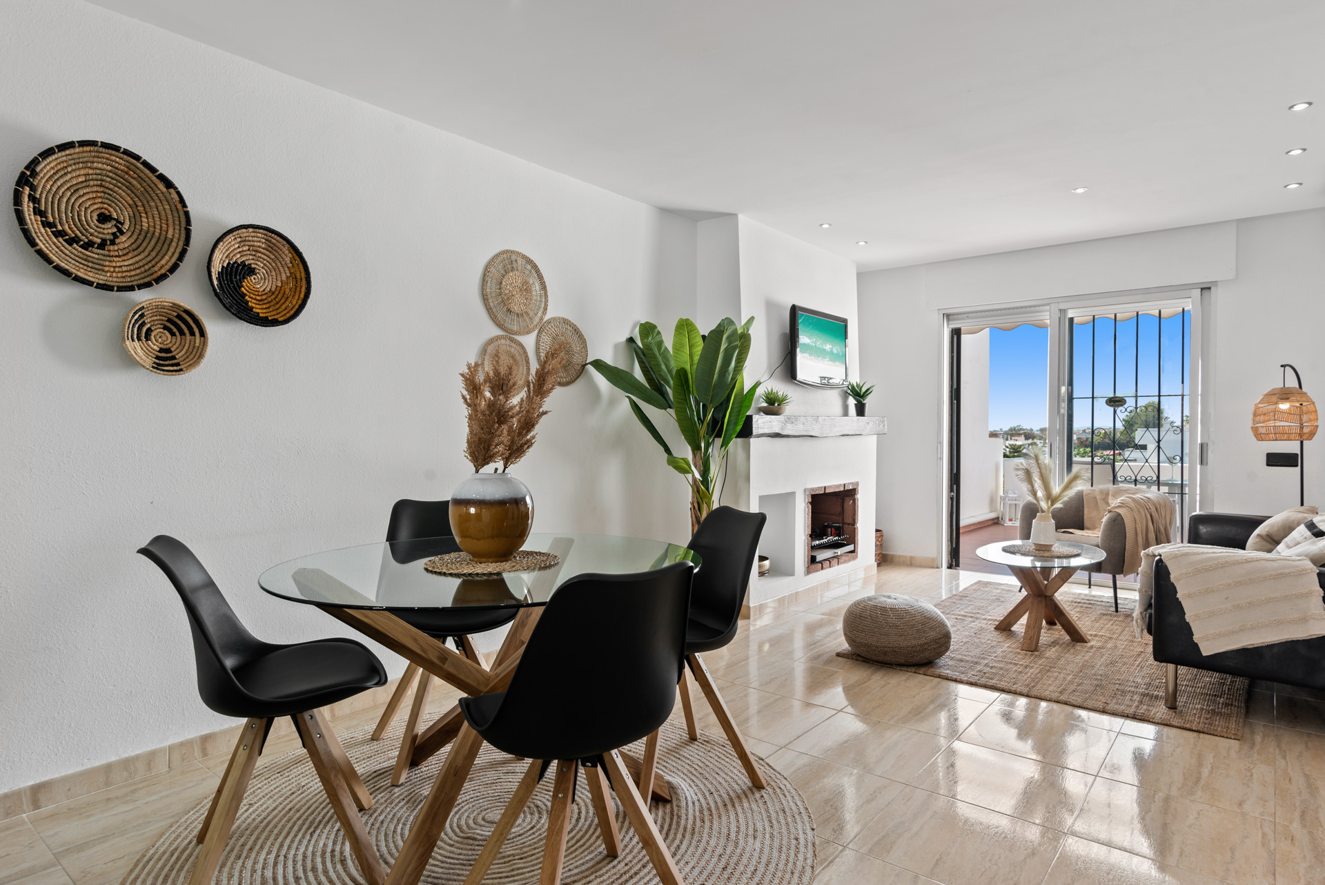 Bienvenue à Casa Cielo ! Casa Cielo est un appartement de 2 chambres et 1 salle de bain magnifiquement présenté à Aldea Blanca, offrant un confort moderne dans l'une des communautés fermées les plus recherchées de Nueva Andalucía. L'appartement présente une disposition ouverte lumineuse où les espaces de vie, de salle à manger et de cuisine se fondent harmonieusement, créant un environnement spacieux et convivial rempli de lumière naturelle. De grandes portes coulissantes en verre relient directement l'intérieur à la terrasse, renforçant la sensation d'espace aéré. L'une des chambres se fond sans effort dans l'espace de vie, créant un espace flexible qui peut servir de salon supplémentaire ou d'espace pour invités tout en conservant l'esthétique ouverte et contemporaine de l'appartement. Un sol en bois chaleureux et des tons neutres donnent à la maison une atmosphère calme et moderne.