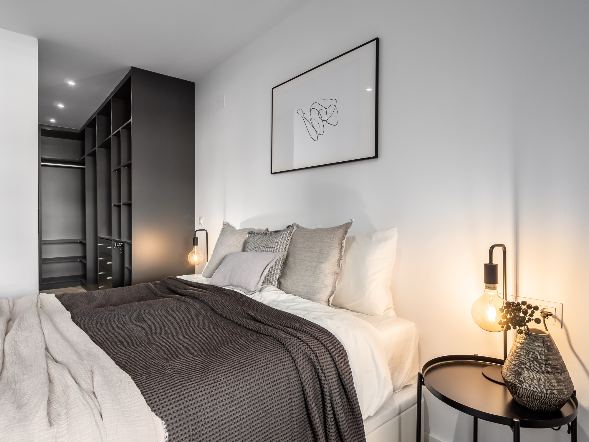 L'appartement comprend 2 chambres et 2 salles de bains. La chambre principale donne sur le balcon et vous permet pratiquement de vous réveiller avec la vue sur la Méditerranée. La deuxième chambre est davantage conçue pour les enfants et comprend un lit superposé avec un lit gigogne et un lit simple supplémentaire.