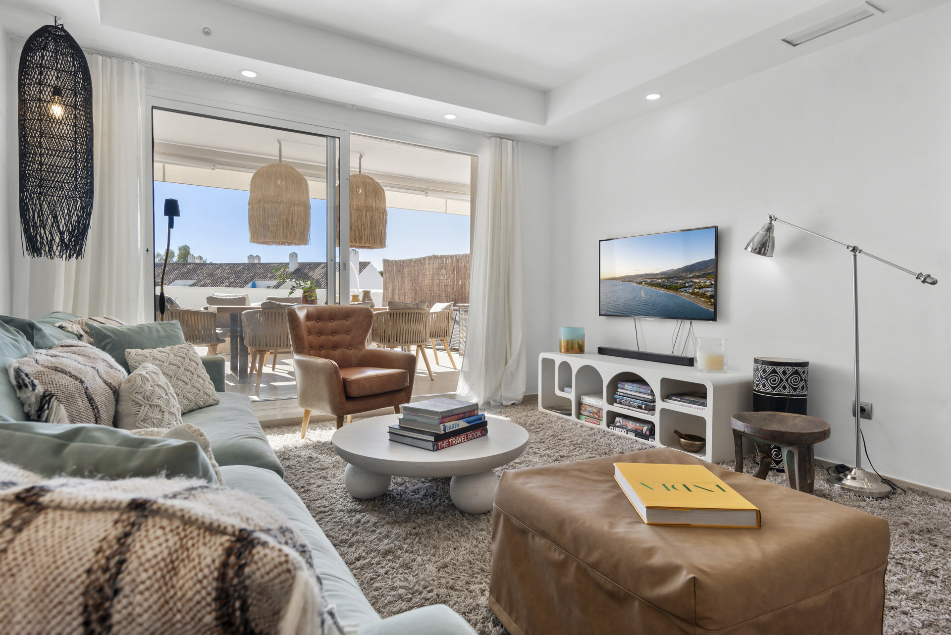 Logement de 120 m² meublé avec goût et très lumineux, avec vue sur la piscine.