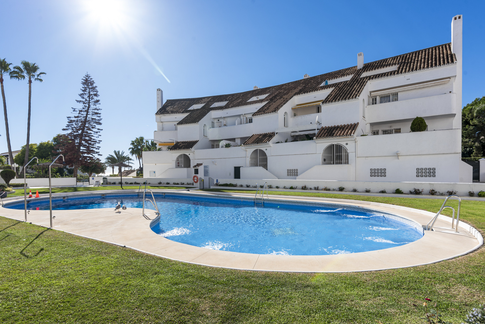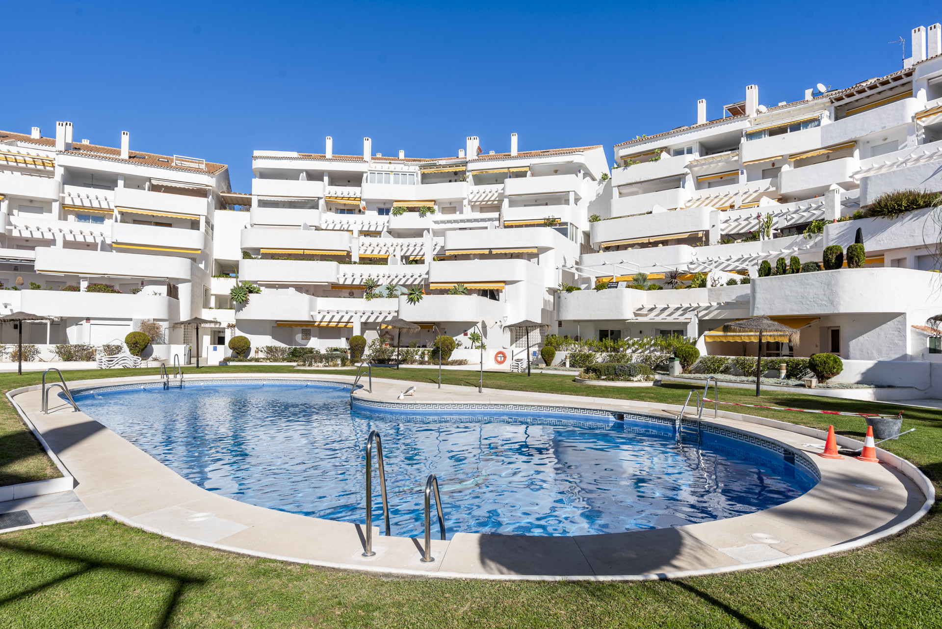 Appartement à Marbella qui possède 3 chambre(s) et Capacité pour 6 personnes. Logement de 120 m² meublé avec goût et très lumineux, avec vue sur la piscine. La location se trouve à 0 m de la gare, 0 m du métro, 0 m des pistes de ski, 0 m du parc d'attractions, 20 m de la gare routière, 400 m du supermarché, 400 m du restaurant, 400 m de la cafétéria, 2 km de la plage de sable, 2 km du domaine de Golf, 2 km de la ville, 2 km du parc, 10 km de l'hôpital, 38 km du parc aquatique, 59 km de l'aéroport, 59 km de l'aéroport et il est situé dans une zone idéale pour familles zone et dans la zone urbaine.Elle dispose de 18 m² de terrasse, lave-linge, barbecue, fer à repasser, accès internet (wifi), sèche-cheveux, chauffage central, climatisation, piscine collective, garage même bâtiment, 1 Télévision.La cuisine américaine, à induction, est équipée avec réfrigérateur, micro-ondes, four, congélateur, lave-vaisselle, vaisselle/couverts, ustensiles/cuisine, cafetière, grille pain, bouilloire et equipement de cuisine.