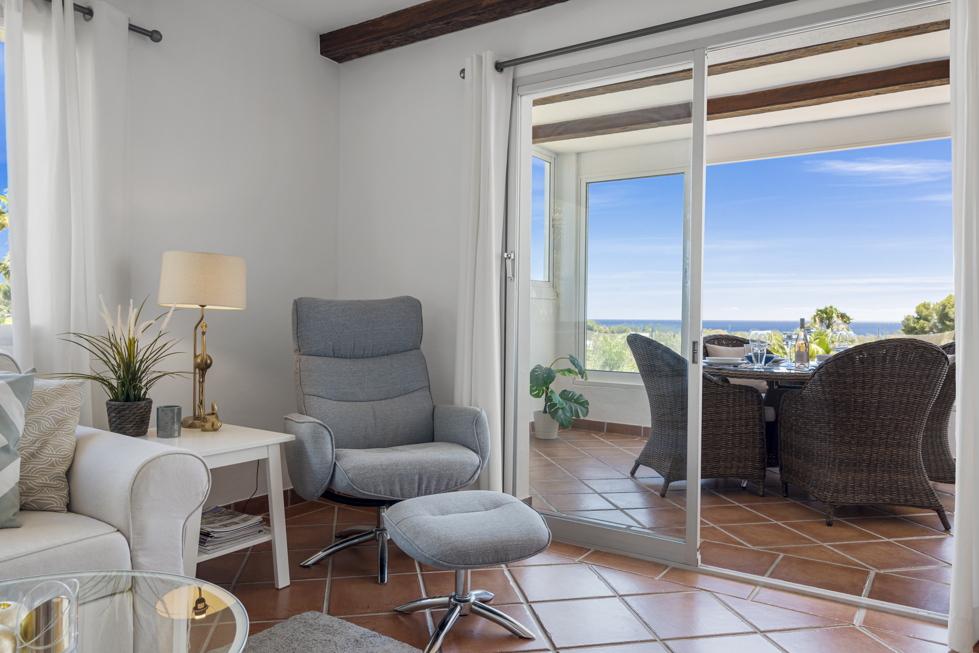 La Casa Primavera offre une vue imprenable sur les magnifiques jardins et la piscine du complexe, tandis que des aperçus lointains de la Méditerranée ajoutent à son charme. La terrasse est un endroit serein avec des sièges extérieurs, idéal pour admirer les levers de soleil avec un café le matin ou regarder le coucher de soleil avec un être cher.