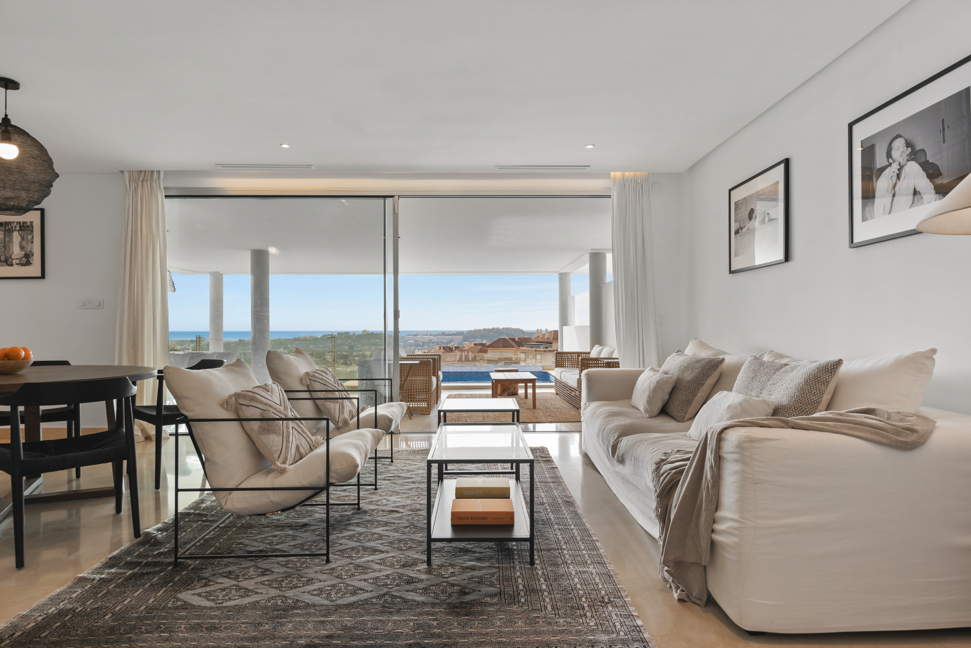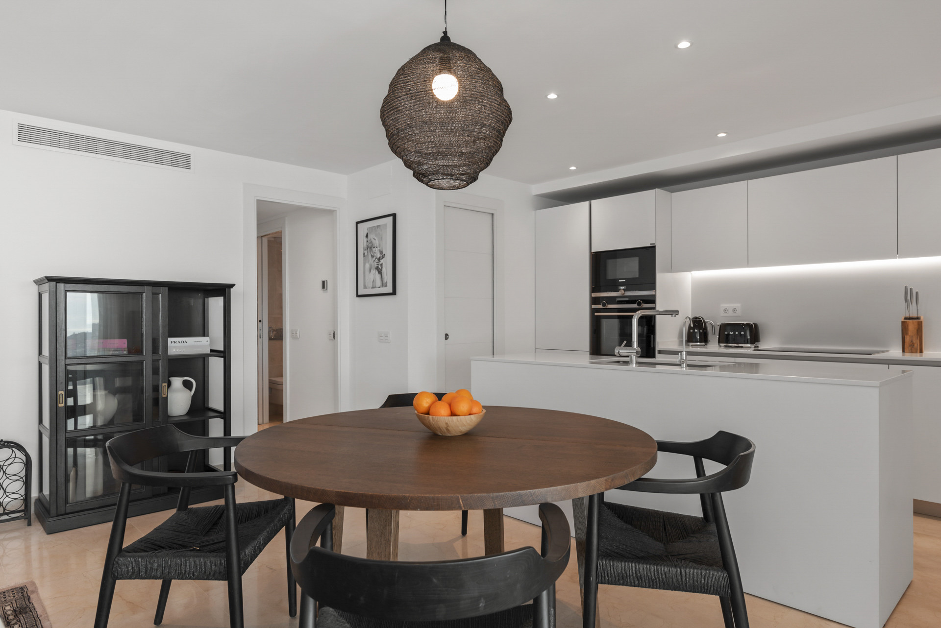 Bienvenue à Casa Cielo ! Casa Cielo est un appartement de 2 chambres et 1 salle de bain magnifiquement présenté à Aldea Blanca, offrant un confort moderne dans l'une des communautés fermées les plus recherchées de Nueva Andalucía. L'appartement présente une disposition ouverte lumineuse où les espaces de vie, de salle à manger et de cuisine se fondent harmonieusement, créant un environnement spacieux et convivial rempli de lumière naturelle. De grandes portes coulissantes en verre relient directement l'intérieur à la terrasse, renforçant la sensation d'espace aéré. L'une des chambres se fond sans effort dans l'espace de vie, créant un espace flexible qui peut servir de salon supplémentaire ou d'espace pour invités tout en conservant l'esthétique ouverte et contemporaine de l'appartement. Un sol en bois chaleureux et des tons neutres donnent à la maison une atmosphère calme et moderne.