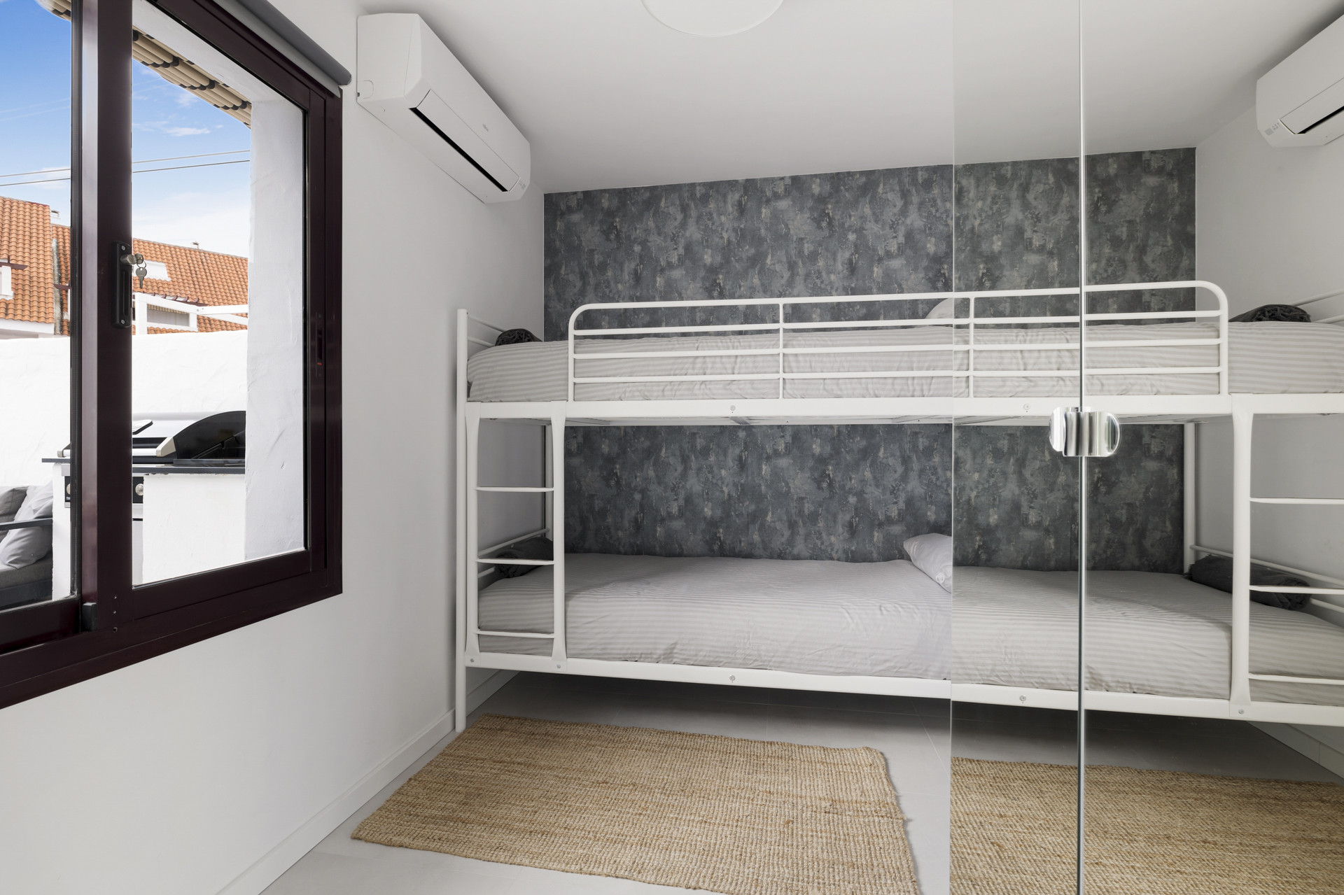 L'appartement comprend 2 chambres et 2 salles de bains. La chambre principale donne sur le balcon et vous permet pratiquement de vous réveiller avec la vue sur la Méditerranée. La deuxième chambre est davantage conçue pour les enfants et comprend un lit superposé avec un lit gigogne et un lit simple supplémentaire.