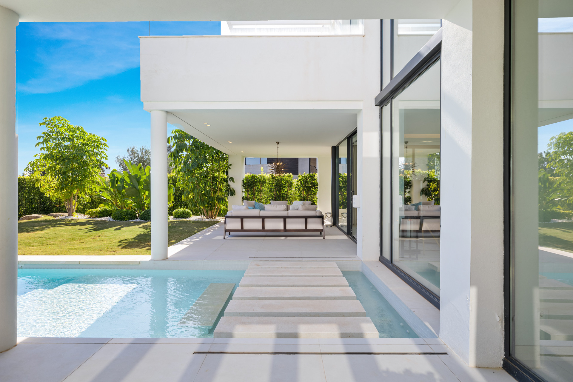 Une nouvelle construction avec rien de moins que les spécifications les plus élevées : une grande piscine extérieure, un home cinéma douillet, des jardins verdoyants et bien plus encore – c'est la retraite parfaite pour une grande famille ou un groupe d'amis cherchant à se détendre et à se ressourcer dans un confort et une intimité luxueux.