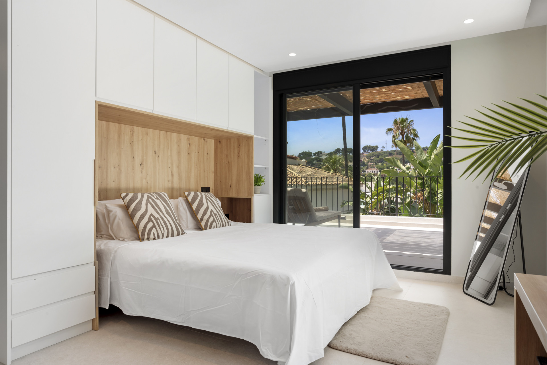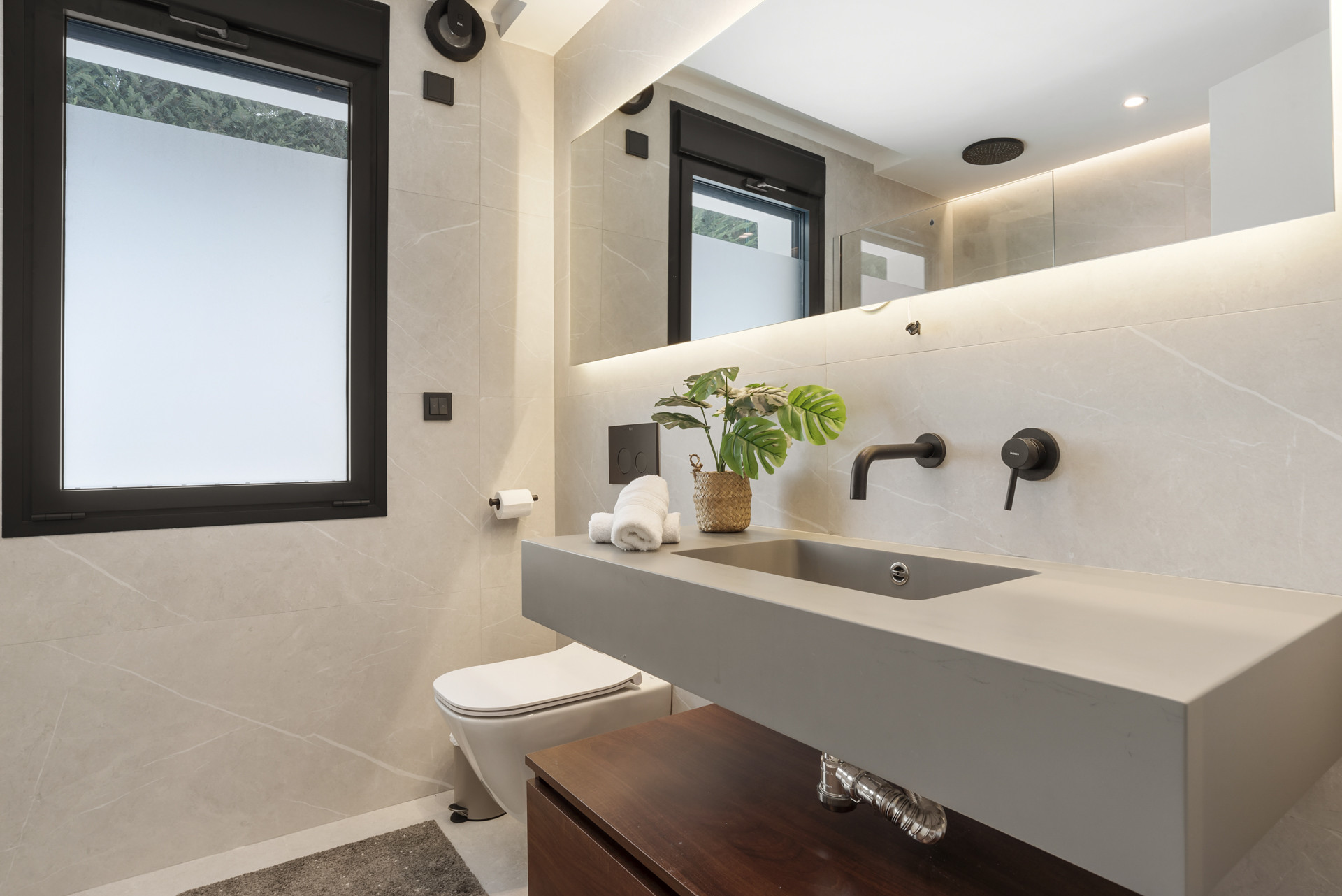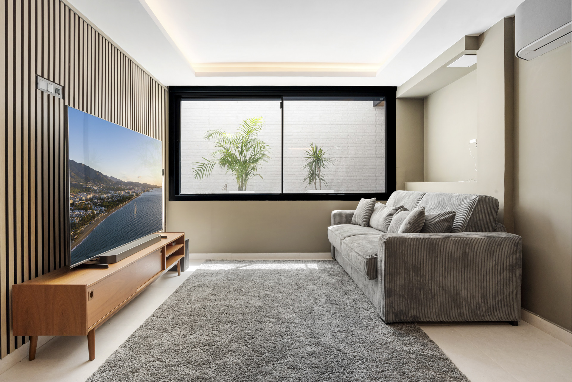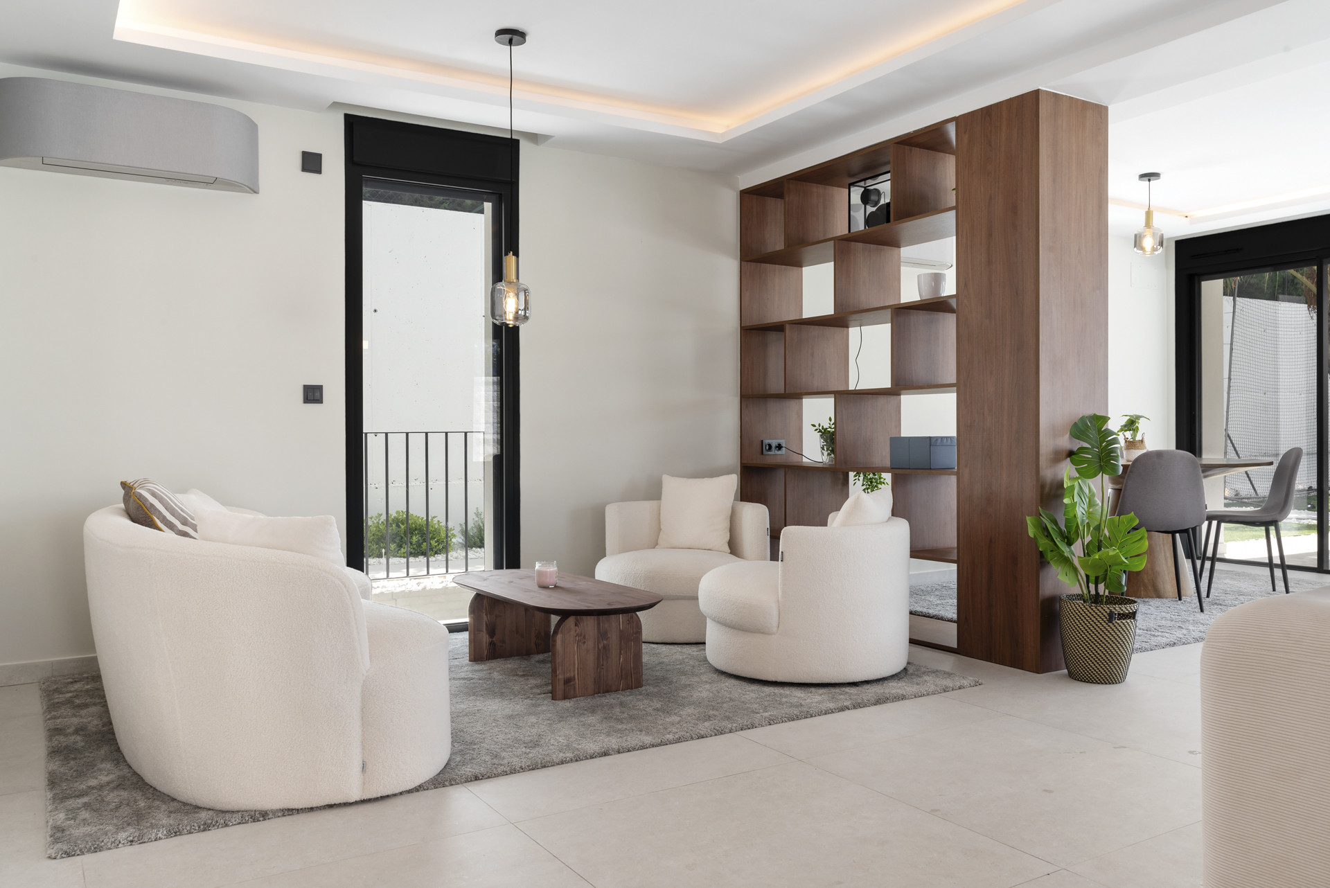 Bienvenue à Villa La Perla ! Nichée au cœur de Nueva Andalucía, cette villa de 6 chambres et 6 salles de bains, magnifiquement rénovée, offre un mélange parfait de confort contemporain et de style intemporel. Située à distance de marche des restaurants de premier ordre, des bars tendance, des boutiques et des commodités essentielles comme les supermarchés, l'emplacement ne pourrait être plus pratique. À l'intérieur, la maison présente un design ouvert sophistiqué avec des finitions élégantes — des salles de bains en pierre lisse aux murs en panneaux de bois cannelés, en passant par la palette neutre apaisante et les plafonds à double hauteur dans les espaces de vie principaux.