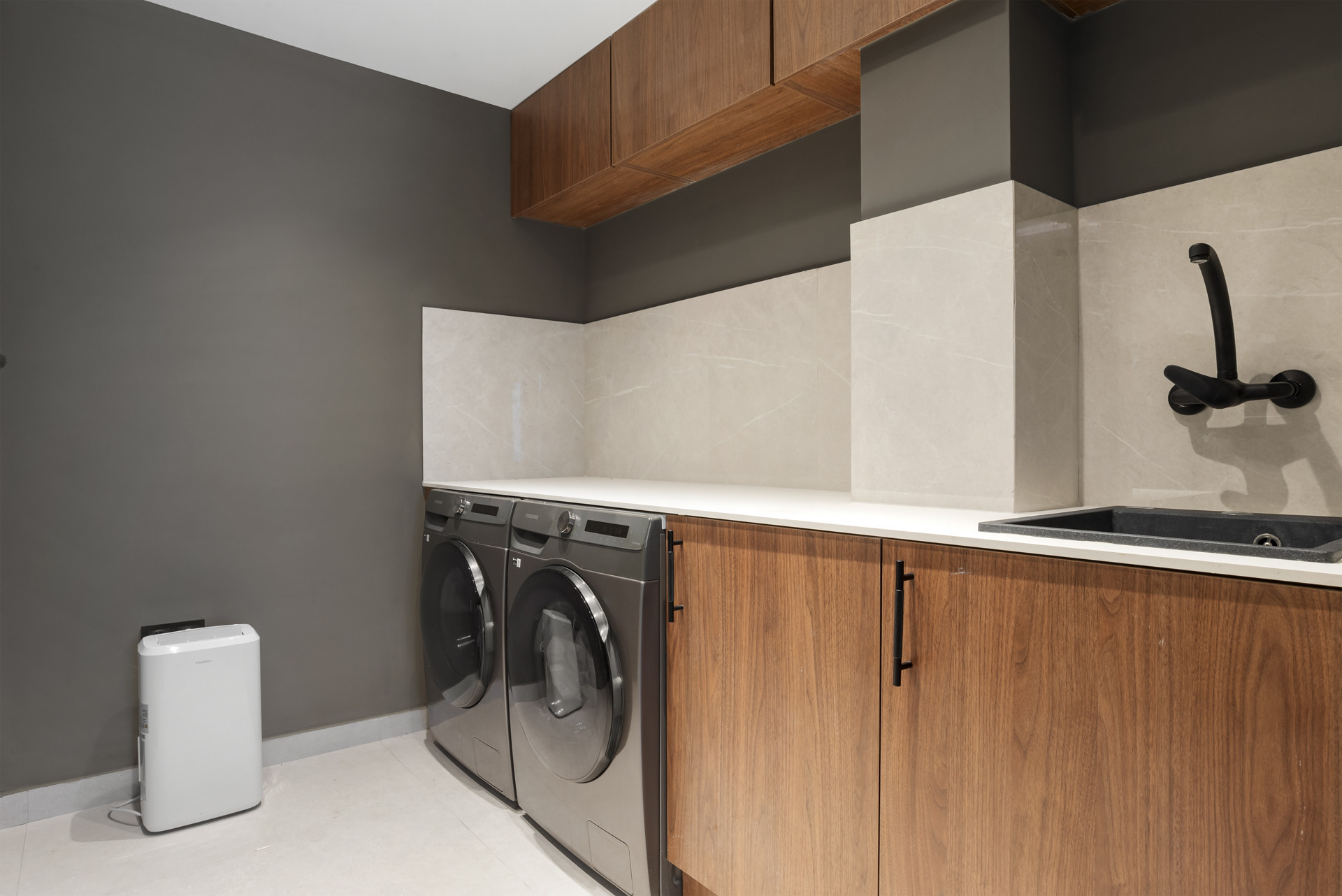 La maison comprend un total de six salles de bain — une avec une baignoire et une douche, cinq avec des douches à l'italienne, et des toilettes d'invités séparées. La cuisine entièrement équipée est un rêve de chef, avec deux lave-vaisselle, un réfrigérateur à vin et des armoires élégantes, tandis qu'une buanderie spacieuse comprend deux combinaisons lave-linge-sèche-linge pour plus de commodité. À l'extérieur, une zone barbecue couverte avec un grill au charbon, un réfrigérateur et un lave-vaisselle facilite l'organisation de réceptions, tandis que plusieurs terrasses offrent un espace pour se détendre, dîner ou simplement profiter du soleil.