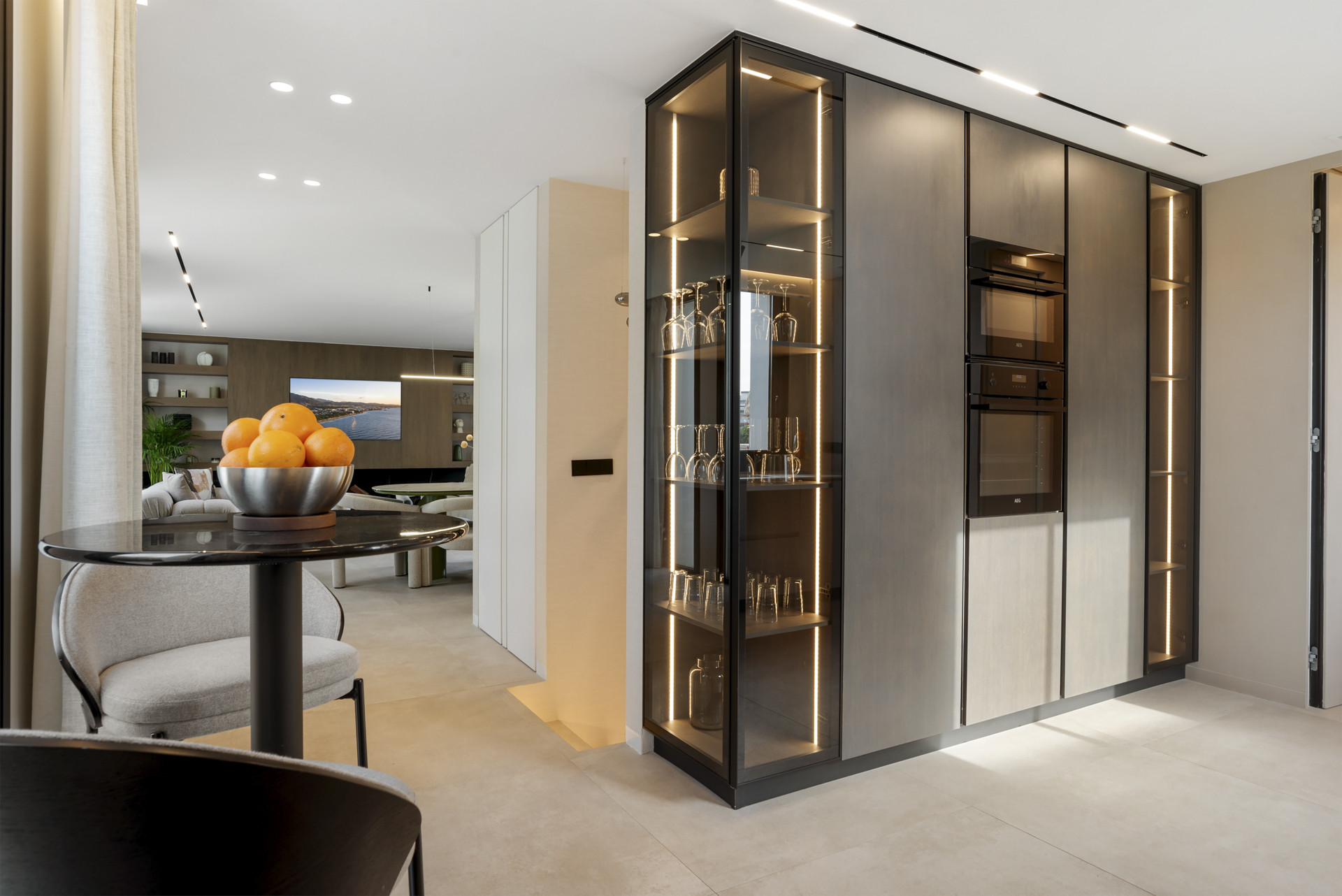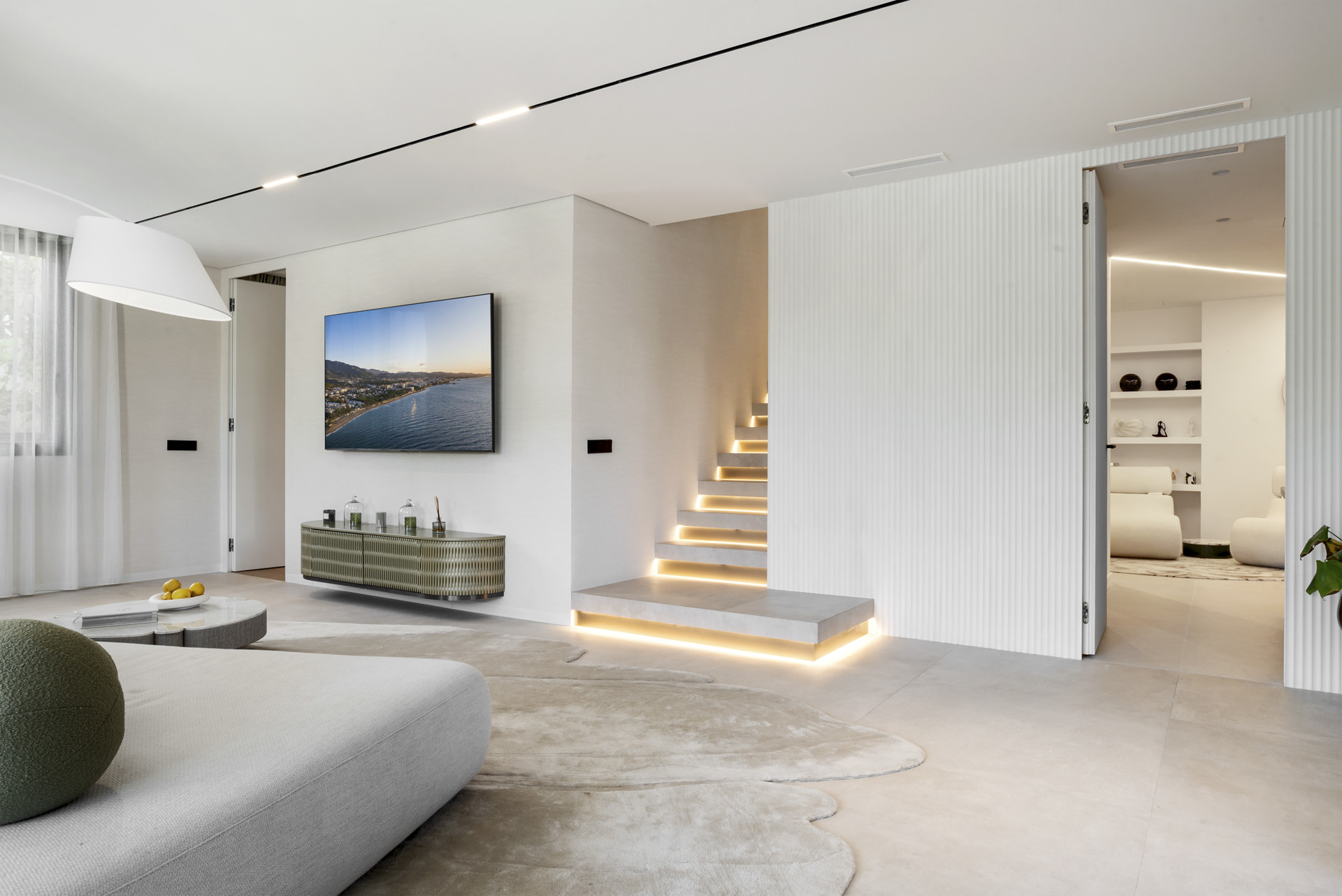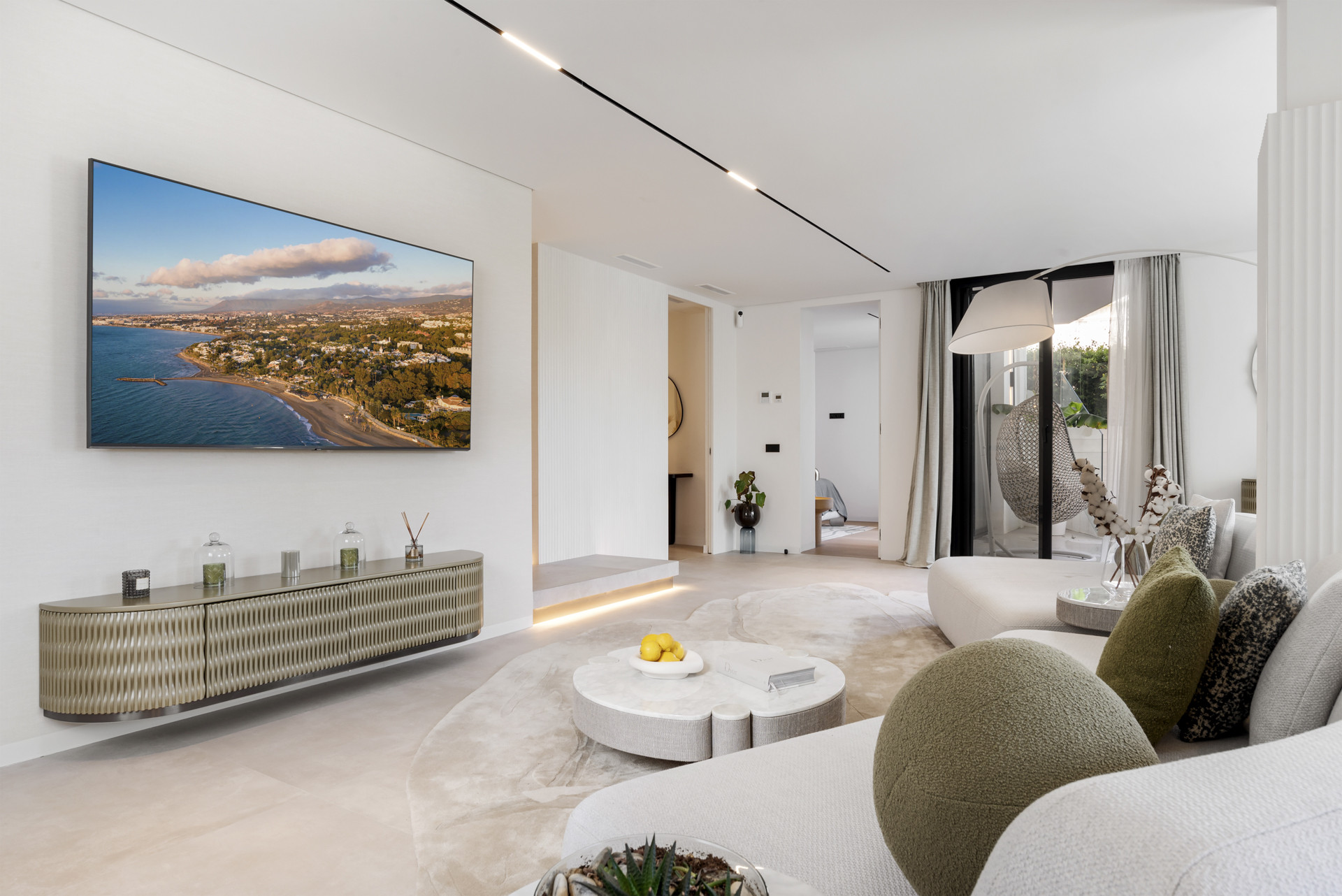 À l'intérieur, Villa Enso dégage une élégance naturelle. La cuisine ouverte se fond harmonieusement dans le salon principal, créant un cœur lumineux et convivial de la maison - idéal pour des repas partagés et des conversations décontractées. Une salle de télévision/cinéma séparée est située à côté de la salle de sport entièrement équipée, toutes deux au même étage, offrant des espaces polyvalents pour le divertissement et le bien-être. Chaque chambre est soigneusement conçue pour le repos et la confidentialité, tandis que des finitions modernes et des ameublements raffinés valorisent chaque coin de la maison.