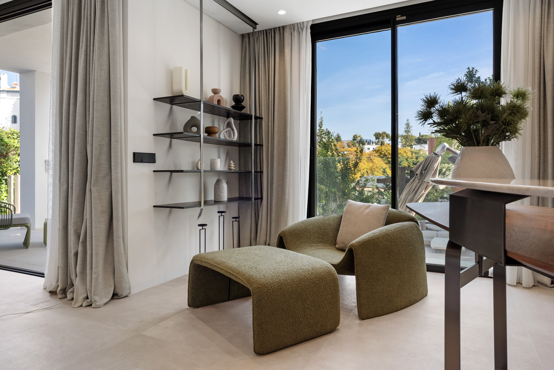 Nichée dans l'environnement tranquille de la vallée de golf de Nueva Andalucía, Villa Serenis est un refuge magnifiquement conçu de 5 chambres et 4 salles de bains, avec un toilette d'invités supplémentaire, situé à quelques instants de la glamour de Puerto Banús. Offrant des vues panoramiques sur La Concha et baignée de lumière matinale grâce à son orientation est, la villa combine des lignes architecturales épurées avec des intérieurs chaleureux et accueillants - parfaits pour les familles ou les groupes recherchant une escapade privée sans sacrifier l'accès aux meilleurs endroits de Marbella.