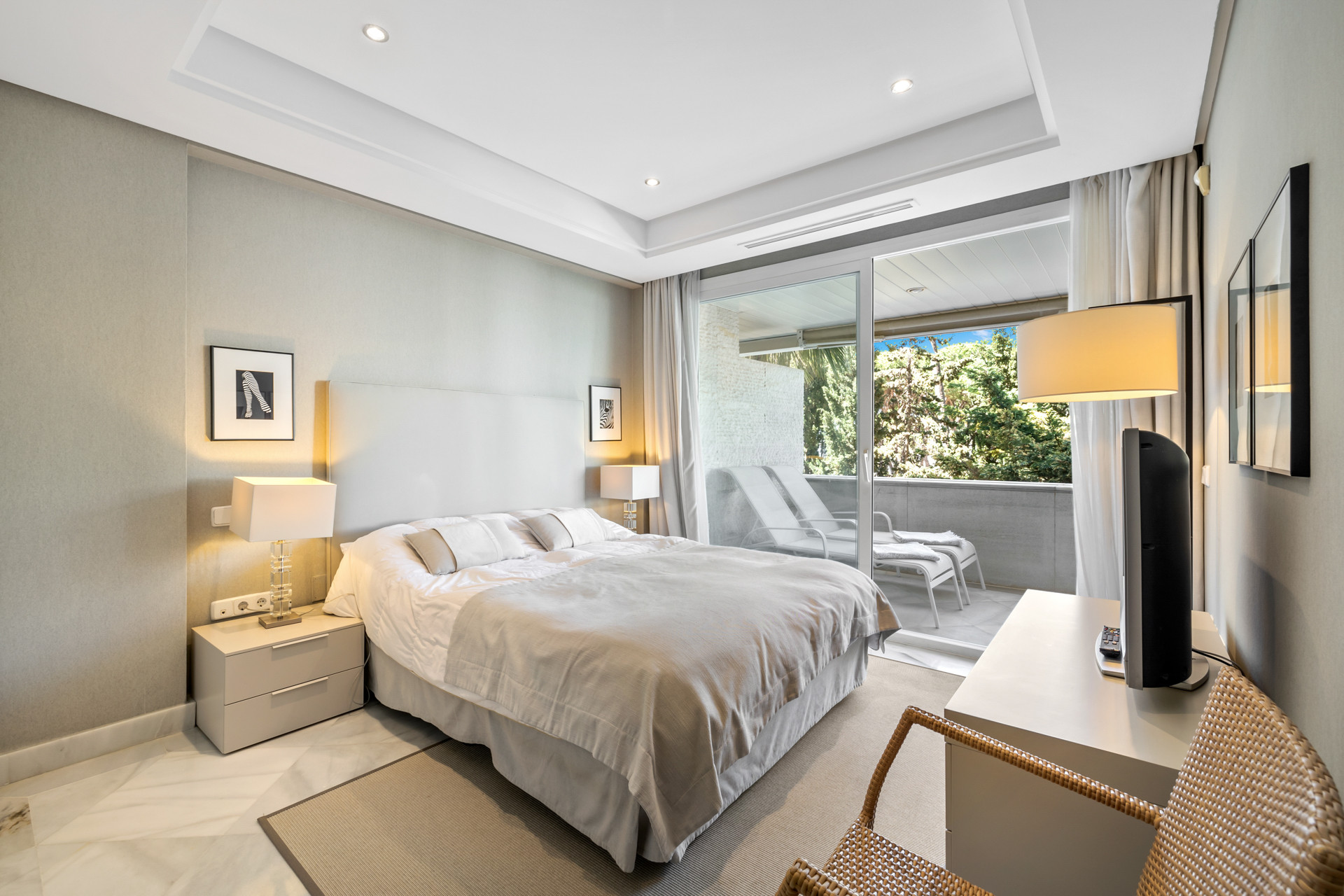 This is a beautiful west-facing two-bedroom apartment in a landmark building, Marina Mariola – An exclusive and tranquil oasis on Marbella’s Golden Mile. Bright, modern, fresh and all that you could ever want, just on your doorstep!