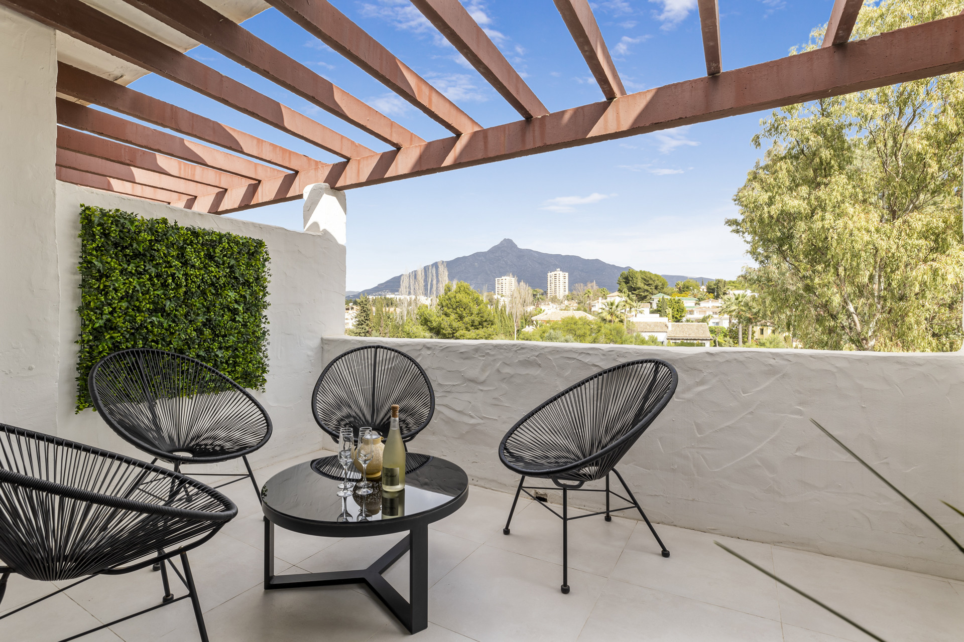 Mountain views from the terraces, bright and spacious open plan living area and 3 comfortable bedrooms, all set in a beautiful Andalusian village-style complex a stone’s throw from all amenities. You could not want for more for your holidays in Marbella.