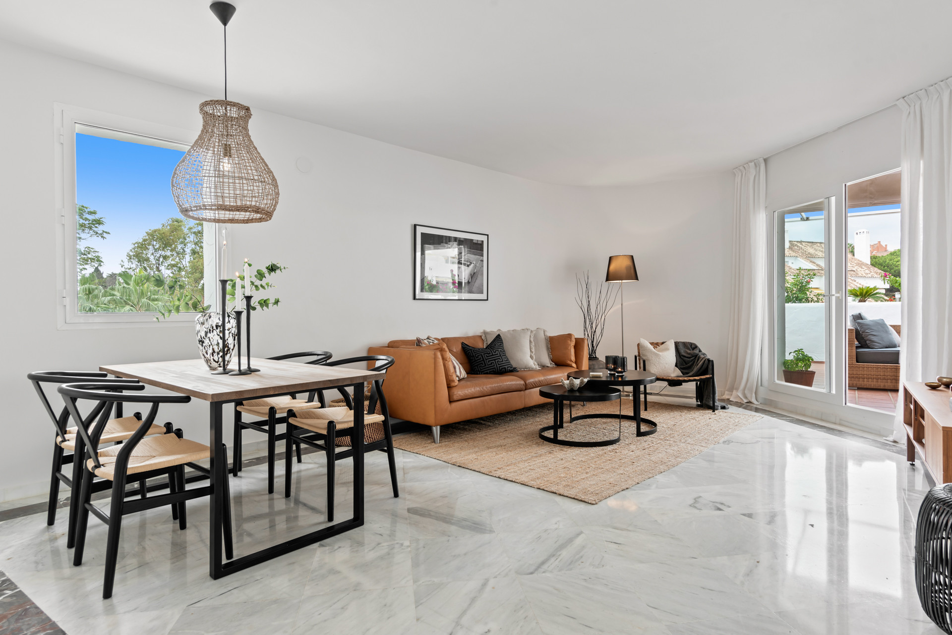 This beautifully renovated 3-bedroom apartment is located in the sought-after El Dorado urbanisation in Marbella, just a short walk from the beach, shops, cafés, and restaurants. Designed with a refined Scandinavian aesthetic, the apartment combines soft natural tones, clean lines, and warm textures to create a calm and elegant coastal retreat.