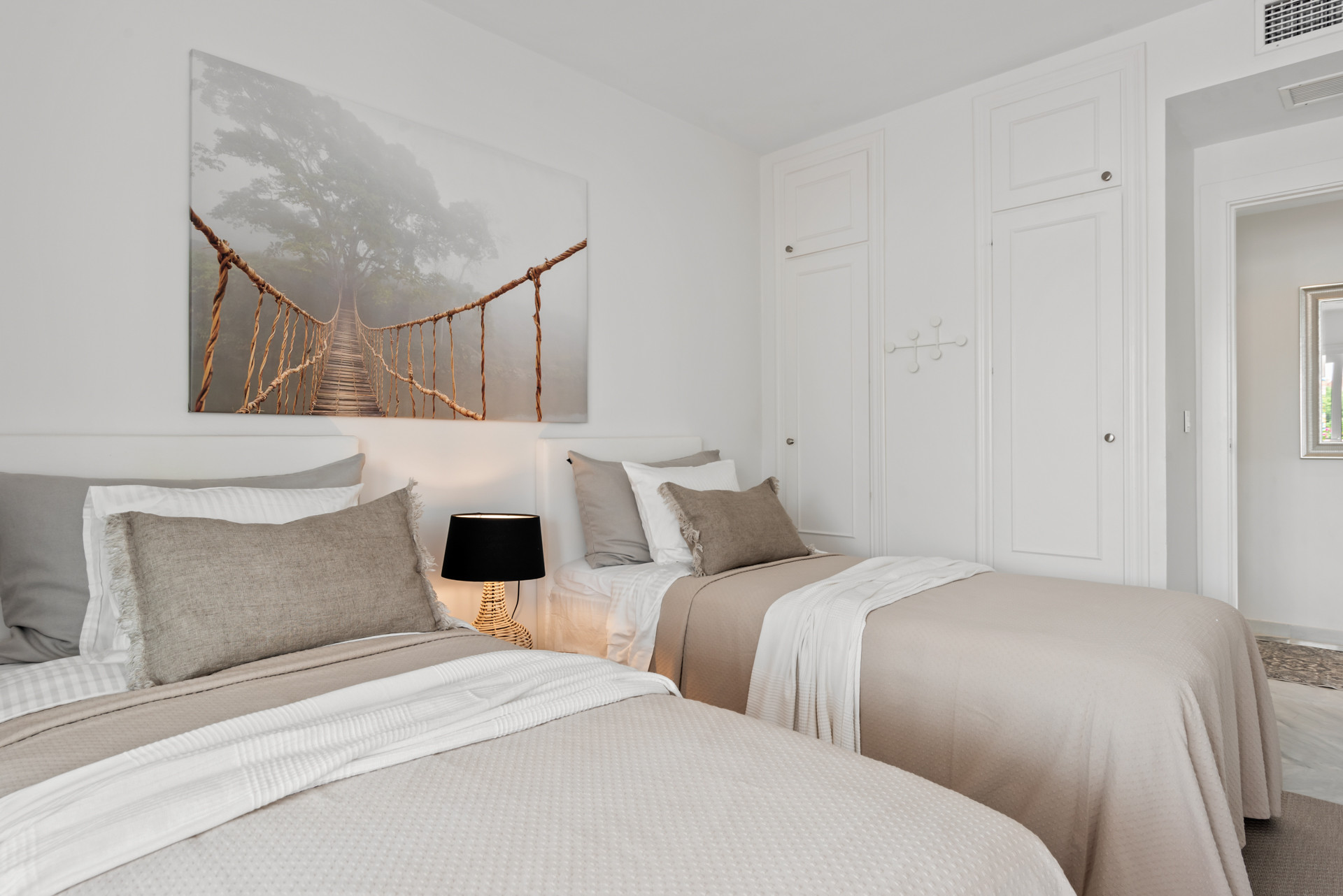The location of the apartment is perfect, close to it all yet in a quiet area. Puerto Banús is only a 15 minutes’ walk away, so is the beach. You have a few restaurants and bars within 5 minutes walk, along with a supermarket. Marbella Old Town is 10 minutes’ drive away, and you have 4 world-class golf courses less than 5 minutes’ drive away (Aloha, Las Brisas, Los Naranjos, and La Quinta).