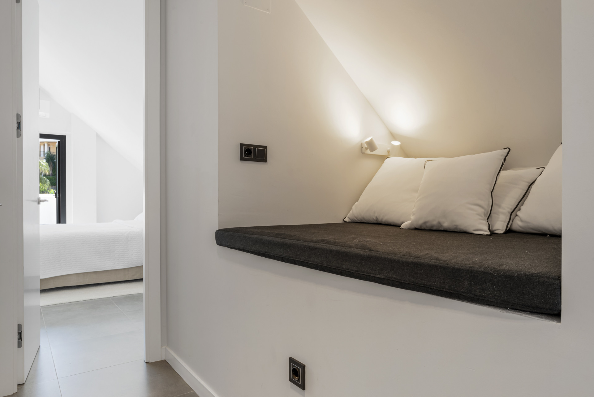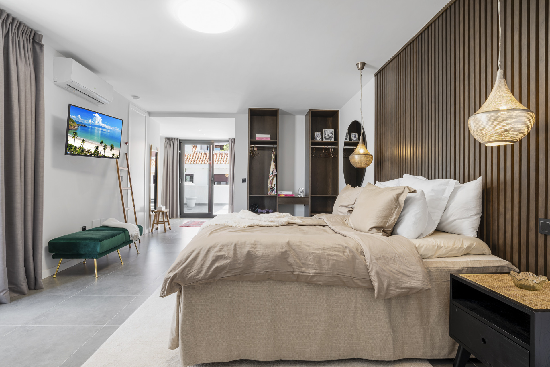One of the standout features of the property is the private rooftop terrace, a spacious and sun-drenched area fitted with sun loungers, an outdoor lounge, and a BBQ setup—perfect for unwinding, entertaining, or simply enjoying long afternoons under the Costa del Sol sky. The terrace offers both privacy and panoramic views, creating an atmosphere that’s hard to beat.