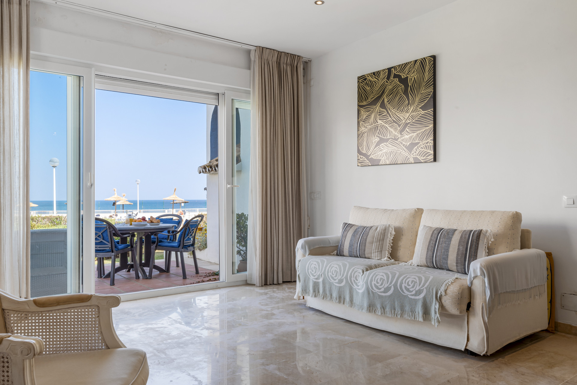Wake up to the sound of waves and uninterrupted sea views at this stunning 3-bedroom, 2-bathroom beachfront townhouse in the exclusive Casares del Mar community. Located on the peaceful shores of Casares Costa, this elegant home sits directly on the frontline beach, offering uninterrupted views of the Mediterranean and immediate access to the sand just steps from your door.