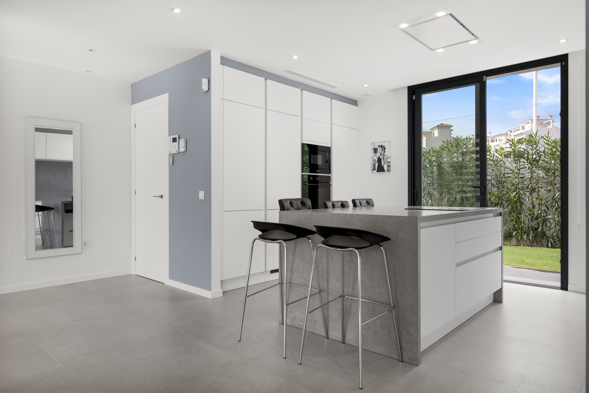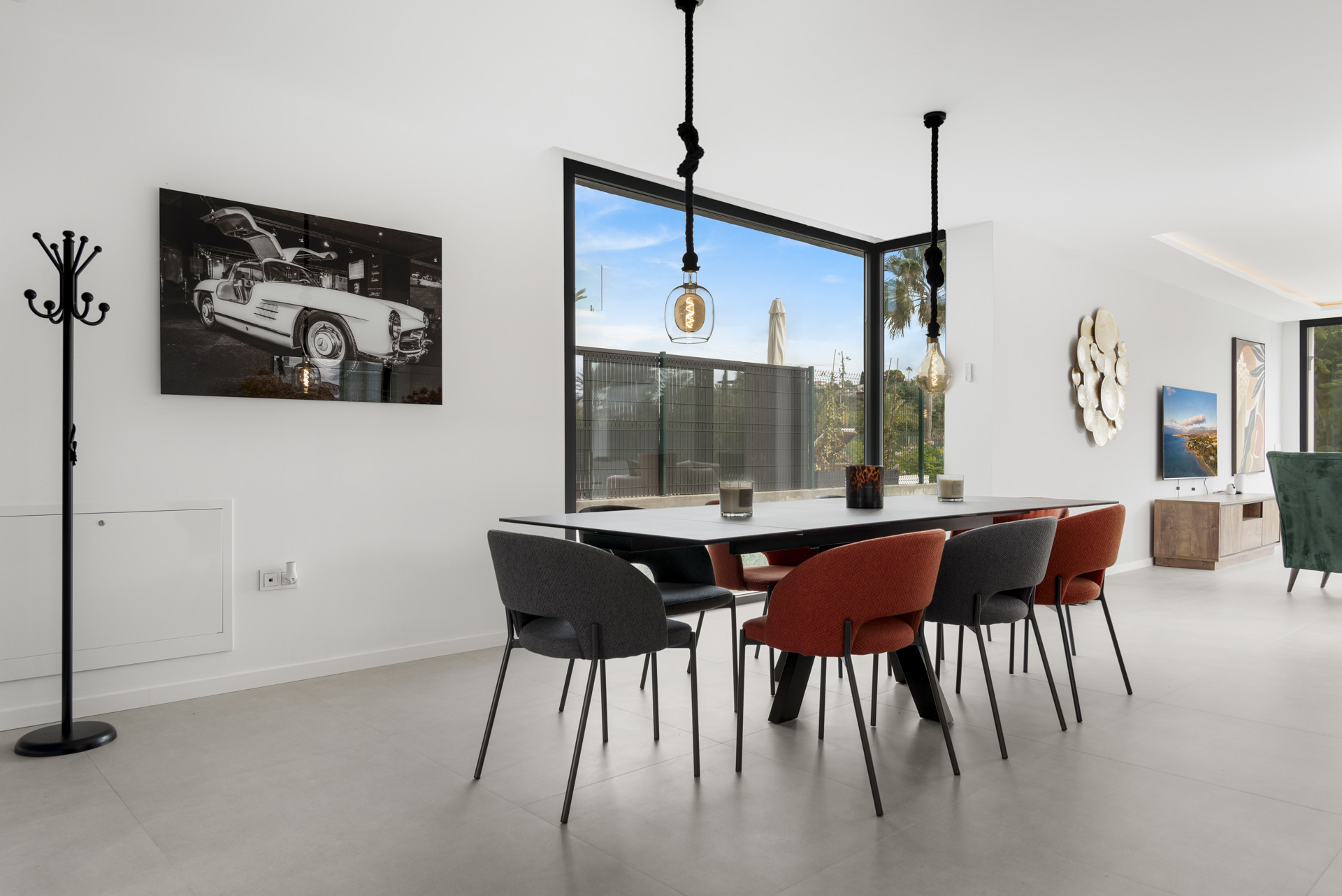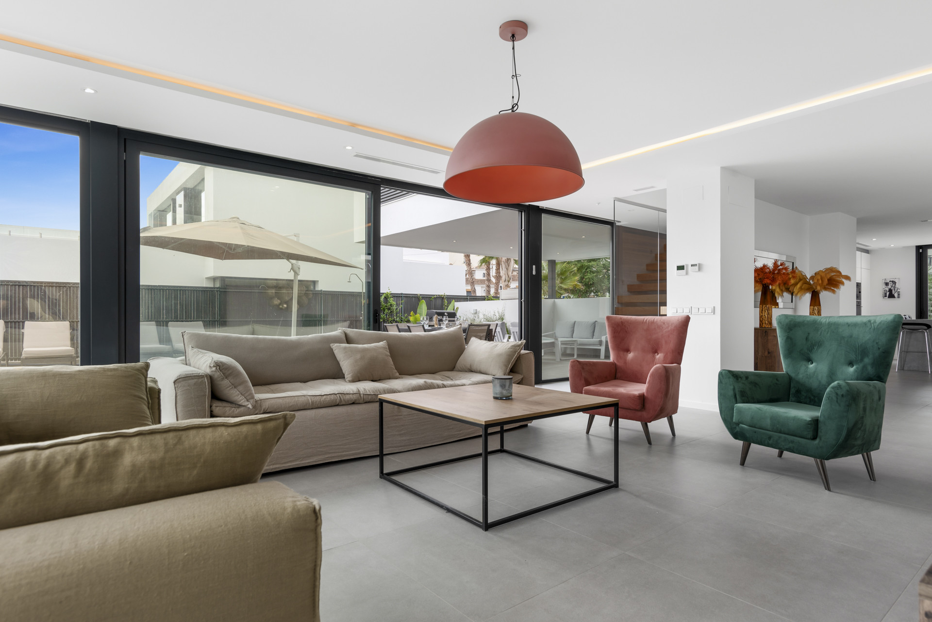 This villa is more than just a home; it’s a sanctuary where modern sophistication meets Mediterranean charm, with a distinctive Scandinavian twist. The spacious, chef-designed kitchen is a centerpiece for those who appreciate the art of cooking. Its open-plan layout flows effortlessly into the living and dining areas, anchored by a beautiful fireplace, creating the perfect setting for cozy, intimate dinners.