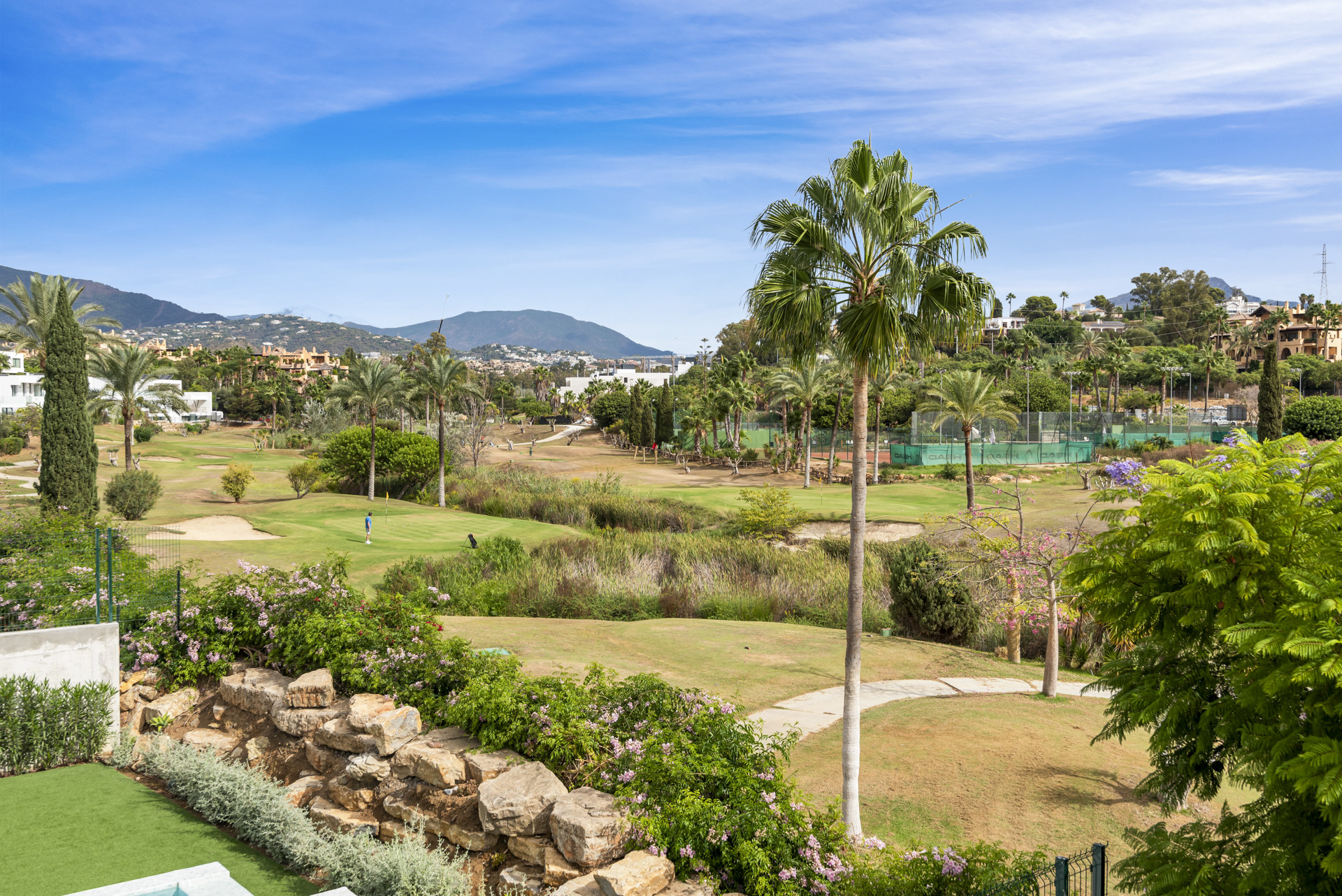 Villa Calma sits snug in the exclusive Valle Romano area in the hills overlooking Estepona town, one of the most desired locations due to its great golf course and serene ambience.